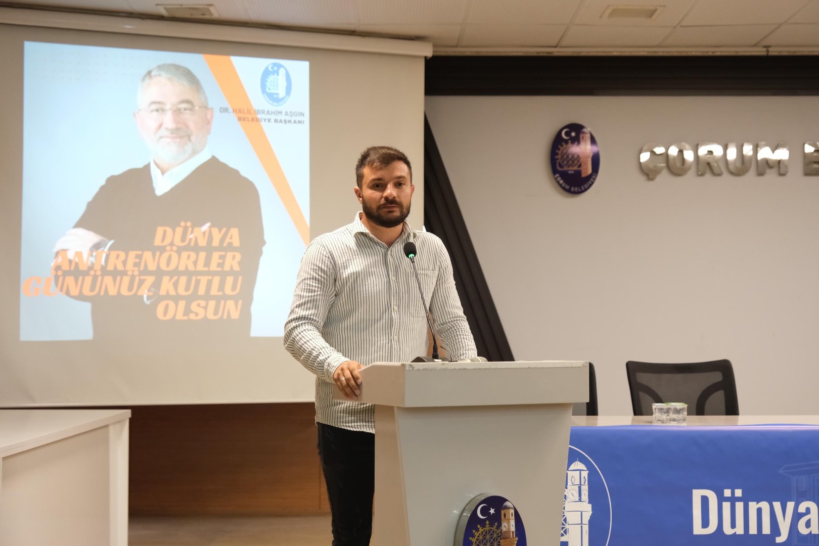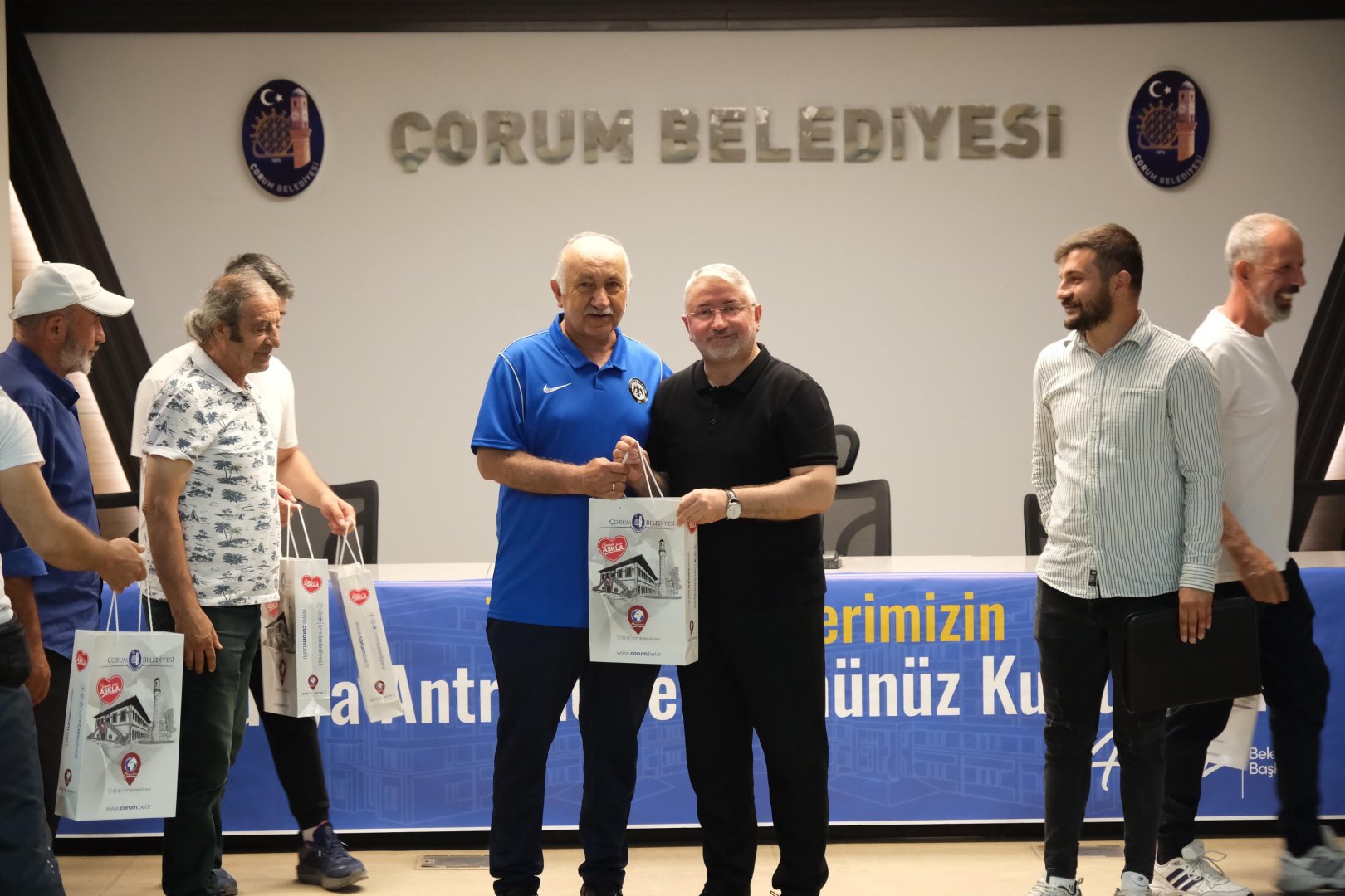 Çorum Belediyesi amatör spor kulüplerine desteğini sürdürüyor. Belediye Başkanı Dr. Halil İbrahim Aşgın, Dünya Antrenörler Günü’nde Çorum’daki amatör spor kulüp temsilcileri ve antrenörlerle bir araya geldi.  Başkan Aşgın, Türkiye Futbol Antrenörleri Derneği (TÜFAD) Çorum Şube Başkanı Yasin Aksoy ve ASKF Başkanı Ferhat Arıcı’nın da katıldığı programda antrenörlere antrenman malzemelerinden oluşan antrenör kiti hediye etti.