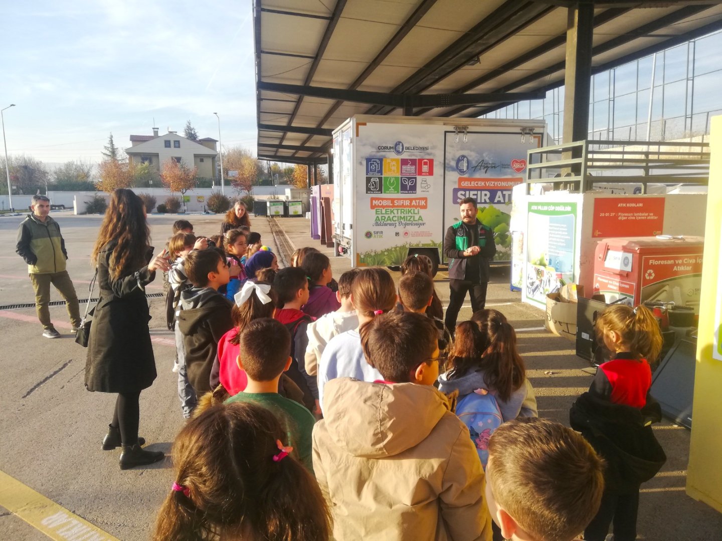 Proje çerçevesinde BİLSEM öğrencileri, Çorum Belediyesi 1. Sınıf Atık Getirme Merkezi’ni ziyaret etti. Teknik gezi sırasında öğrenciler, evsel kaynaklı geri dönüştürülebilir atıkların toplanması, ayrıştırılması, geri dönüştürülmesi ve bertaraf edilmesi süreçlerini yerinde inceledi. Ziyaret sonunda öğrencilere, geri dönüştürülmüş plastikten üretilen 3D baskı anahtarlıklar hediye edildi.