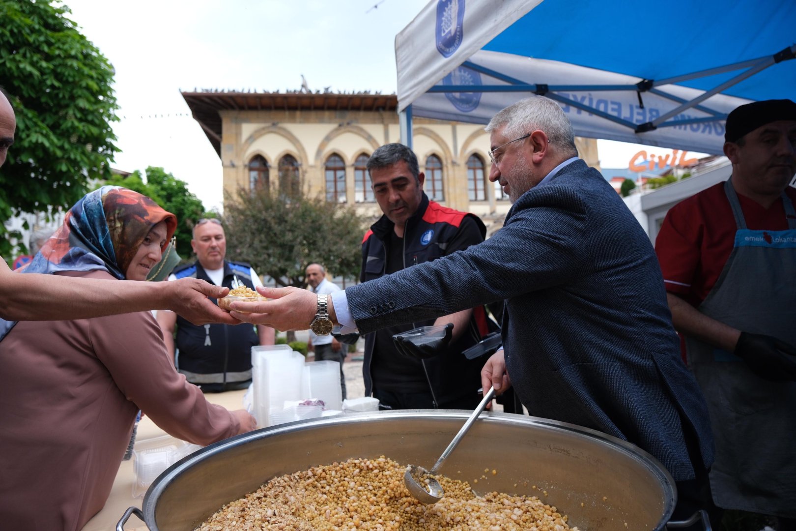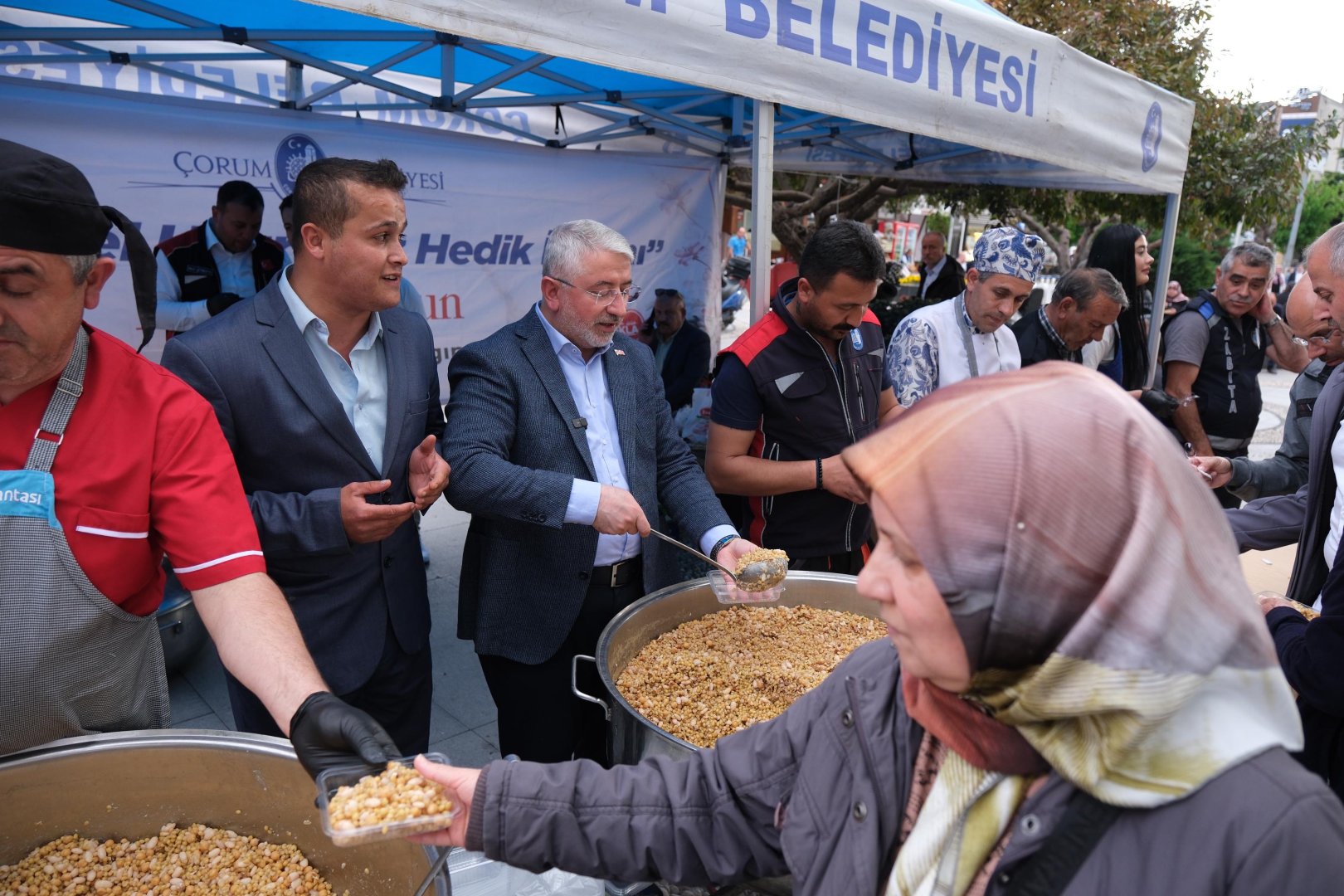 Çorum Belediyesi, baharın müjdecisi Hıdırellez nedeniyle şehrin farklı noktalarında vatandaşa hedik ikram etti.