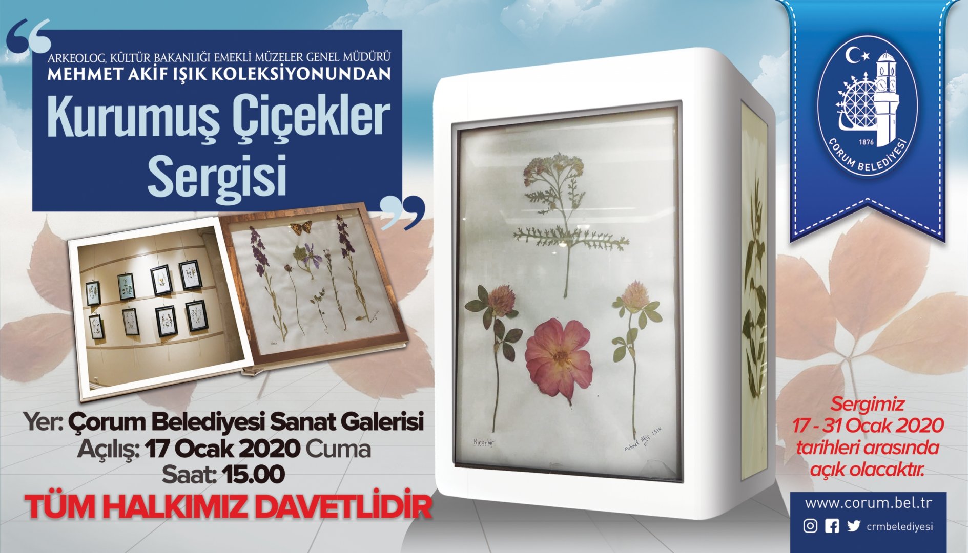 Arkeolog ve Eski Kültür Bakanlığı Müzeler Genel Müdürü Mehmet Akif Işık’ın 1969 yılından beri dosya, kitap ve defterlerin arasında biriktirdiği çiçeklerin yer aldığı sergide özellikle Ankara, Sivas, Afyon, Aydın, İzmir, Eskişehir gibi şehirlerden toplanılan çiçekler yer alıyor. Belediye Başkan Yardımcımız İsmail Yağbat, 197 tablodan oluşan sergiye tüm Çorum halkını davet etti.