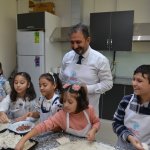 İsmail Yağbat ile birlikte beyaz önlükleri giyip mutfağa giren şeker çocuklar