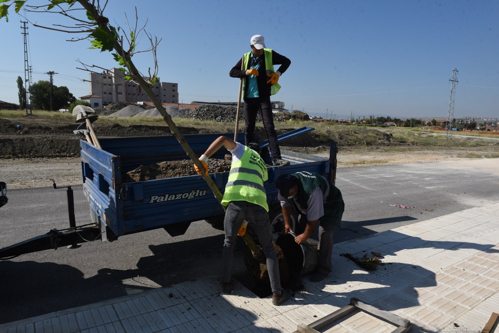 Belediyemiz kent merkezinde, bir yandan yeşil dokuyu daha da güzelleştirirken bir yandan da yeni ağaçları toprakla buluşturmaya devam ediyor.