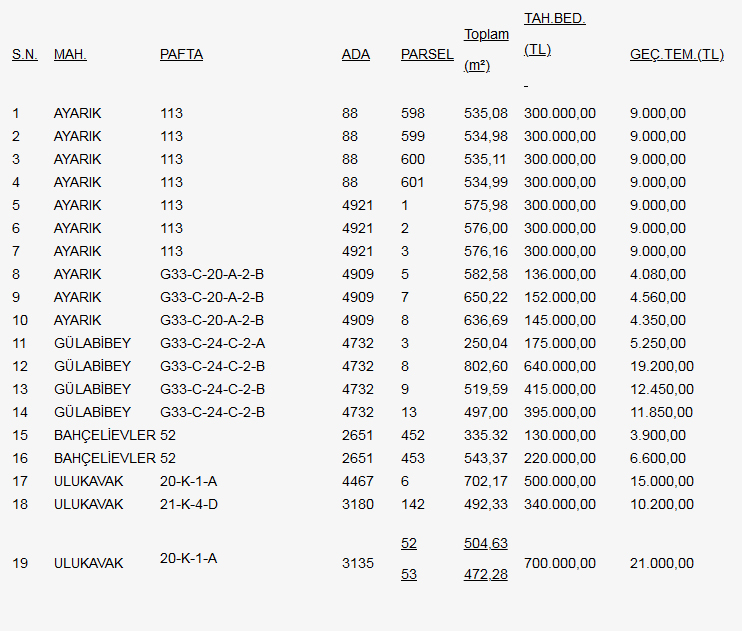 Belediyemiz,19 arsayı satışa çıkartıyor