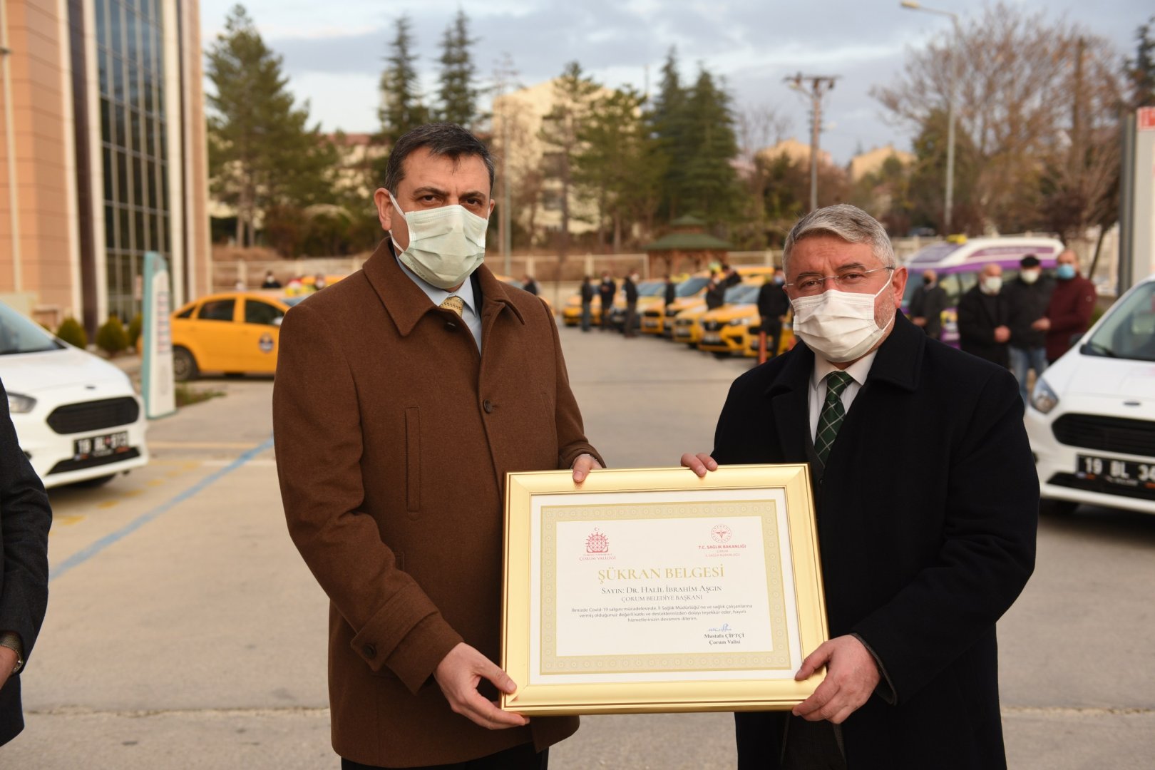 Çorum İl Sağlık Müdürü Uzm. Dr. Ömer Sobacı ve Çorum Esnaf ve Sanatkarları Odaları Birliği (ÇESOB) Başkanı Recep Gür, filyasyon ekibine verilen araç desteği nedeniyle Vali Mustafa Çiftçi ve Belediye Başkanı Dr. Halil İbrahim Aşgın’a teşekkür etti.