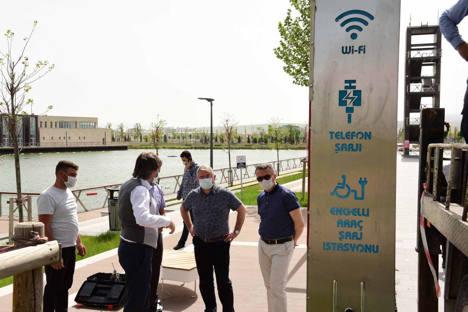 Belediyemiz vatandaşların cep telefonu şarj sorunu ve engelli vatandaşların akülü arabalarını şarj etmeleri için oluşturulan Akıllı Bankı Millet Bahçesi ve Kültür Parka kurdu. Ayrıca bu iki park içerisinde, parkın her noktasında erişim sağlanabilen ücretsiz Wi-Fi de vatandaşları ve özellikle gençleri sevindirdi.“Vatandaşlarımız evlerinde kalmaya devam ederken bizlerde şehri onlara hazırlıyoruz”diyen Çorum Belediye Başkanımız Dr. Halil İbrahim Aşgın’’Şu anda Millet Bahçesindeyiz ve yeni bir istasyon oluşturuyoruz. Bu istasyon, Wİ-Fi, engelli araç şarj ve cep telefonu şarj istasyonu olarak faaliyette bulanacak. Tabi biz, bir an önce park ve bahçelerin açılması ve burada gençlerimizin çocuklarımızın koşması oynamasını, buraları cıvıl cıvıl bir hale getirmesini çok arzu ediyoruz. Bu anlamda da hemşehrilerimizin evde kaldığı dönemde şehrimizi her yönden güzelleştiriyoruz, zenginleştiriyoruz ve onlara yeni sosyal ortamlar oluşturmaya çalışıyoruz. Onlardan bir tanesi de hemşehrilerimizin çok sevdiği Millet Bahçemiz. Burada bulunan sosyal tesislerimizin önüne bu istasyonumuzu kuruyoruz.  Gençlerimiz ne istiyorsa bu şehirde o olacak. Şu an iki tane istasyonumuz var, biri burada Millet Bahçesinde diğeri ise itfaiyenin hemen altındaki Kültür Parkta olacak. Bu iki istasyonumuzda hemşehrilerimiz ücretsiz internet erişiminden yararlanabilecek. Özellikle engelli kardeşlerimiz bu istasyonumuzda arabalarını şarj edebilecek. Hemşehrilerimize hayırlı olsun diyorum. Biz onlar için, onların sokağa çıkacağı gün için şehrimizi hazırlıyoruz. Onlar evde kalmaya devam etsinler, biz aşkla çalışmaya devam ediyoruz ‘’ dedi.