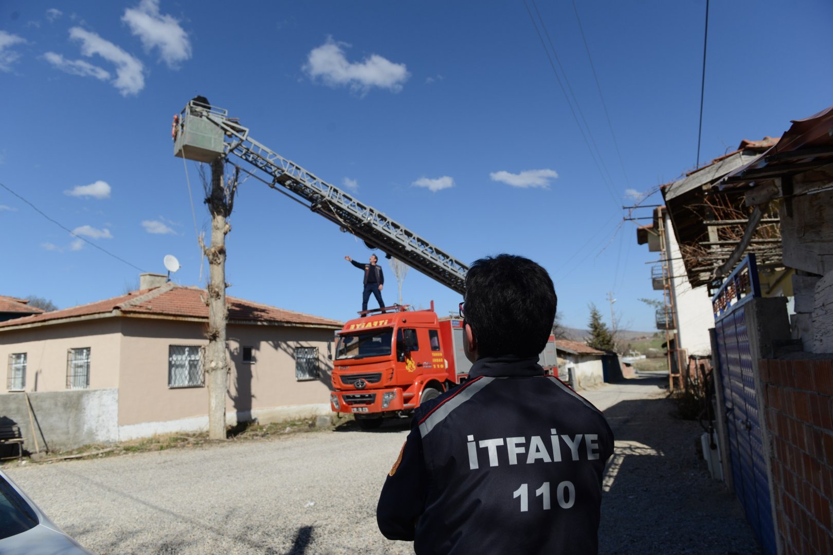 Bayat Mahallesi Muhtarı Fikret Külcü, leyleklerin geçtiğimiz yıllarda sıkça kullandığı yuvayı elleriyle onardı. Çorum Belediyesi İtfaiye Müdürlüğü ekiplerinden yardım isteyen Muhtar Fikret Külcü, leylek yuvasının hem bakımını yaptı hem de yuvayı onardı.