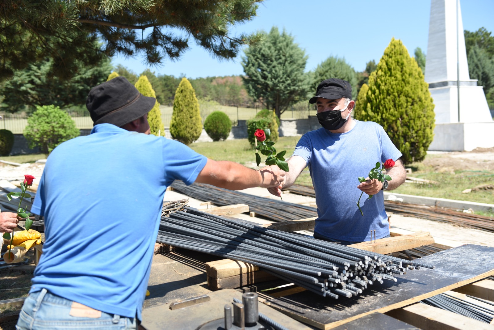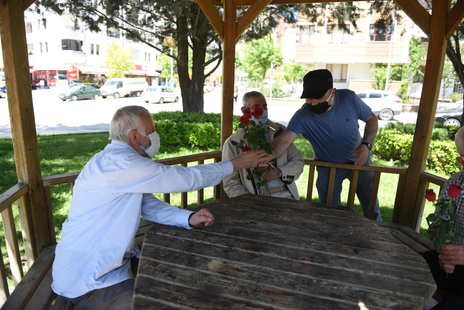 Belediye Başkan Yardımcısı Turhan Candan daha sonra Babalar Gününde çalışmak zorunda olan babalarla birlikte ve caddede, sokakta, parkta gördükleri vatandaşların da Babalar Gününü kutlayıp onlara gül hediye etti.