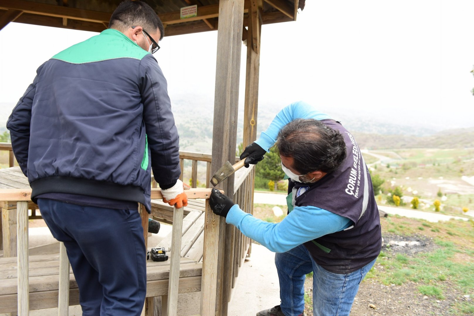 Belediyemiz, park ve yeşil alanlardaki oturma gruplarını tamir ve tadilat çalışmalarını tüm hızıyla sürdürüyor. Koronavirüs tedbirleri kapsamında evlerinde kalan vatandaşların salgın sonrası daha güzel bir Çorum için çalıştıklarını ifade eden Belediye Başkanımız Dr. Halil İbrahim Aşgın, “Park ve yeşil alanlarımızı “O gün”e hazırlıyoruz.” dedi.