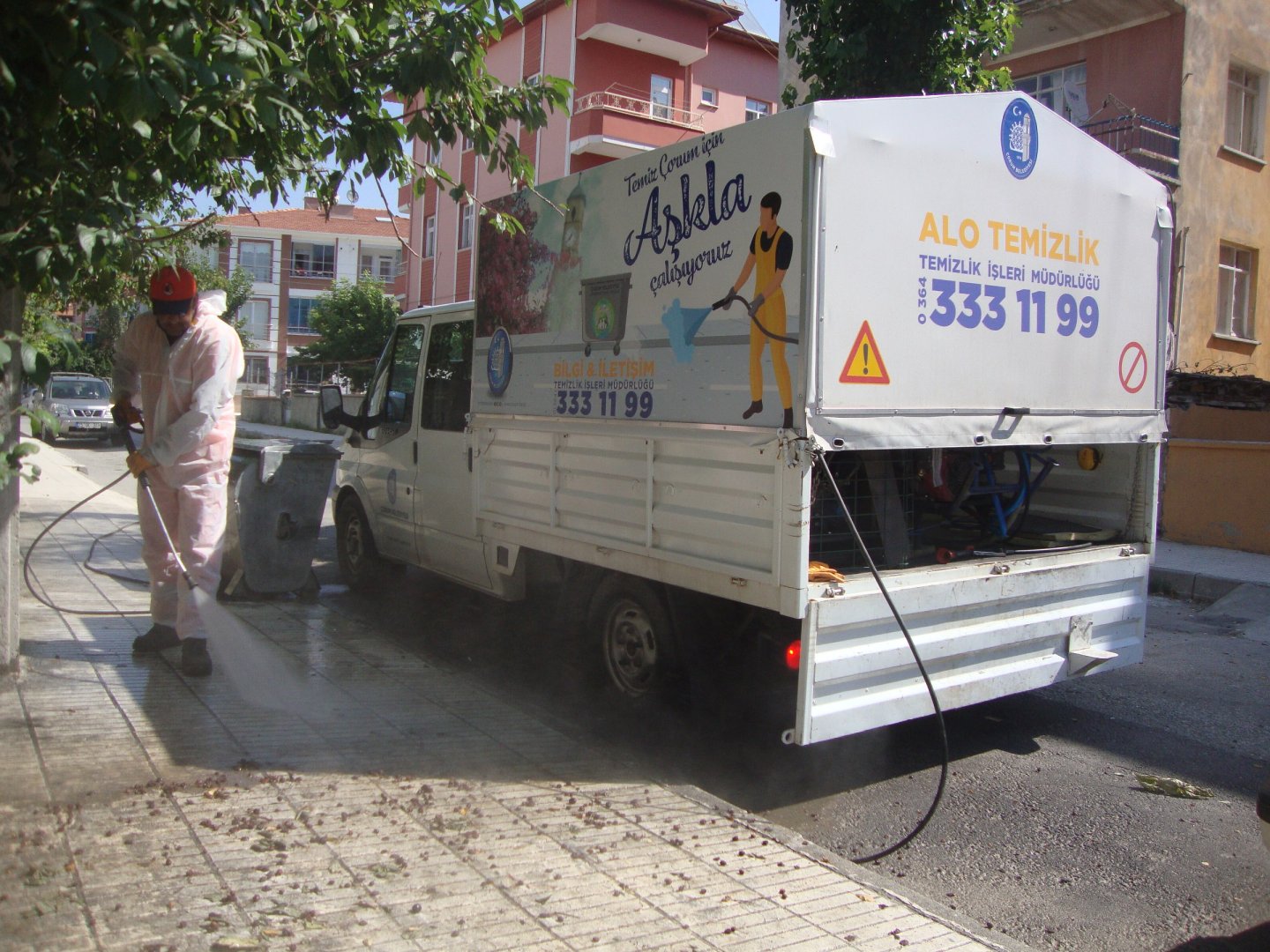 Temizlikte marka kent unvanı ile çalışmalar gerçekleştiren Belediyemiz, evsel atık konteynırlarını düzenli olarak yıkıyor. Yıkama çalışmaları ile kötü koku ve karasinek oluşumunun önüne geçiliyor.