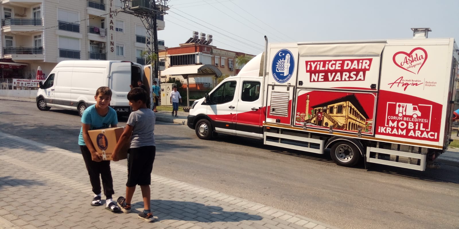 Belediyemiz, hem yangınlar karşı mücadele eden söndürme ekibine hem de yöre halkı için Mobil İkram Aracını yangın bölgesine gönderdi. Belediye Başkan Yardımcısı Turhan Candan, “Yapacağımız çorba, çay, limonata ve su gibi ikramlarla da desteğimizi sürdüreceğiz. Belediye Başkanımız Dr. Halil İbrahim Aşgın’ın bölgeye yardım sevki konusundaki talimatlarını yerine getirerek kısa süre içerisinde o bölgede yangının yaralarını sarma konusunda Çorum üzerine düşeni yapacak.” diye konuştu.