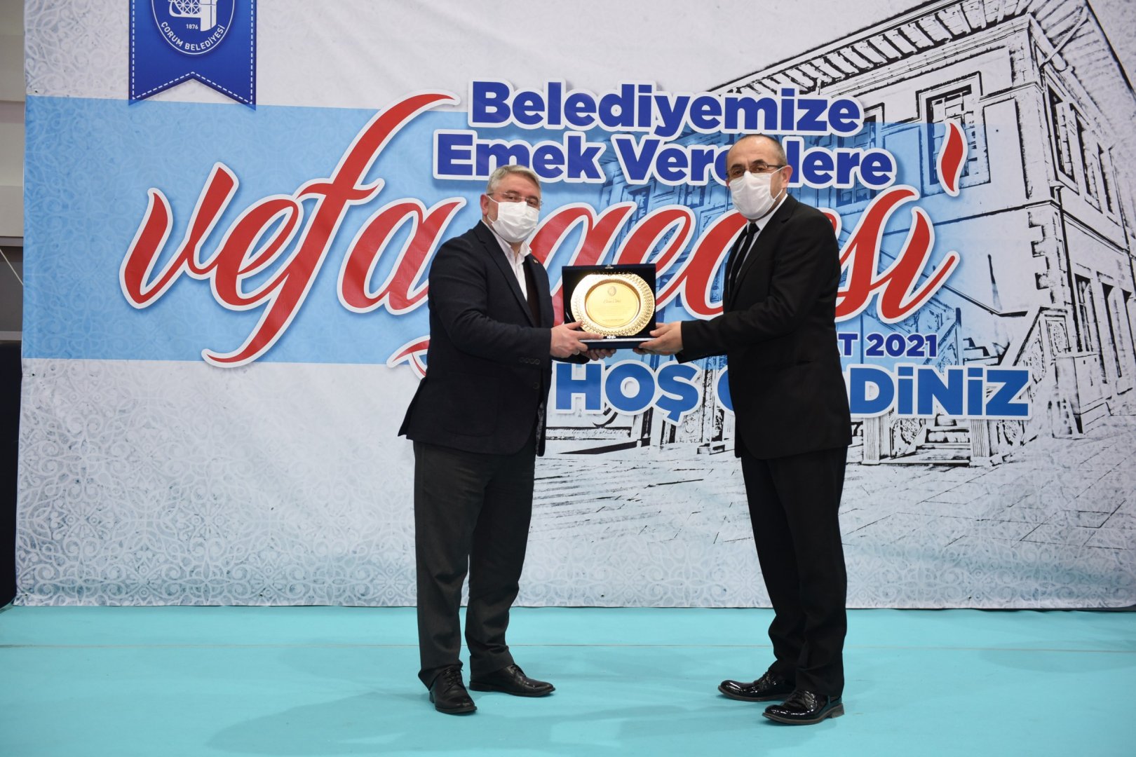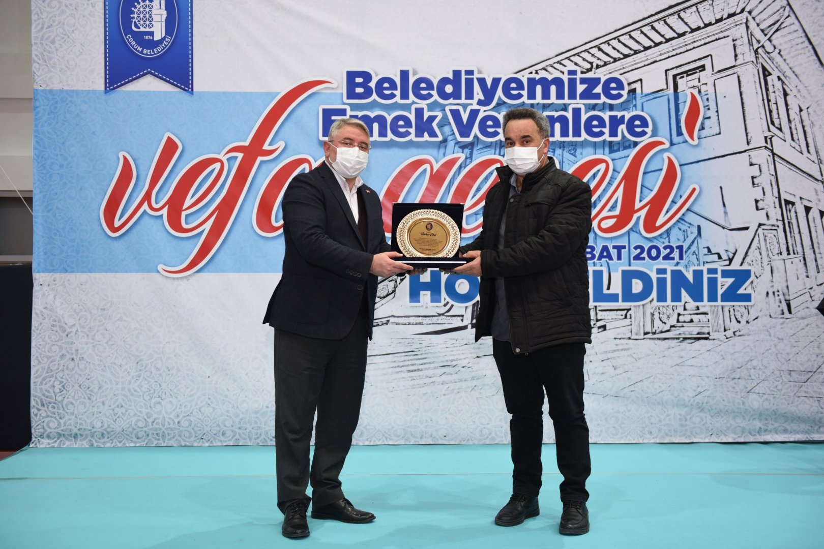 Belediyemiz Buhara Kültür Merkezi Spor salonunda düzenlenen “Belediyemize Emek Verenlere Vefa Gecesi” programında yaptığı konuşmada belediye personelinin büyük bir gayret ve samimiyetle Çorum için çalıştığını söyledi.