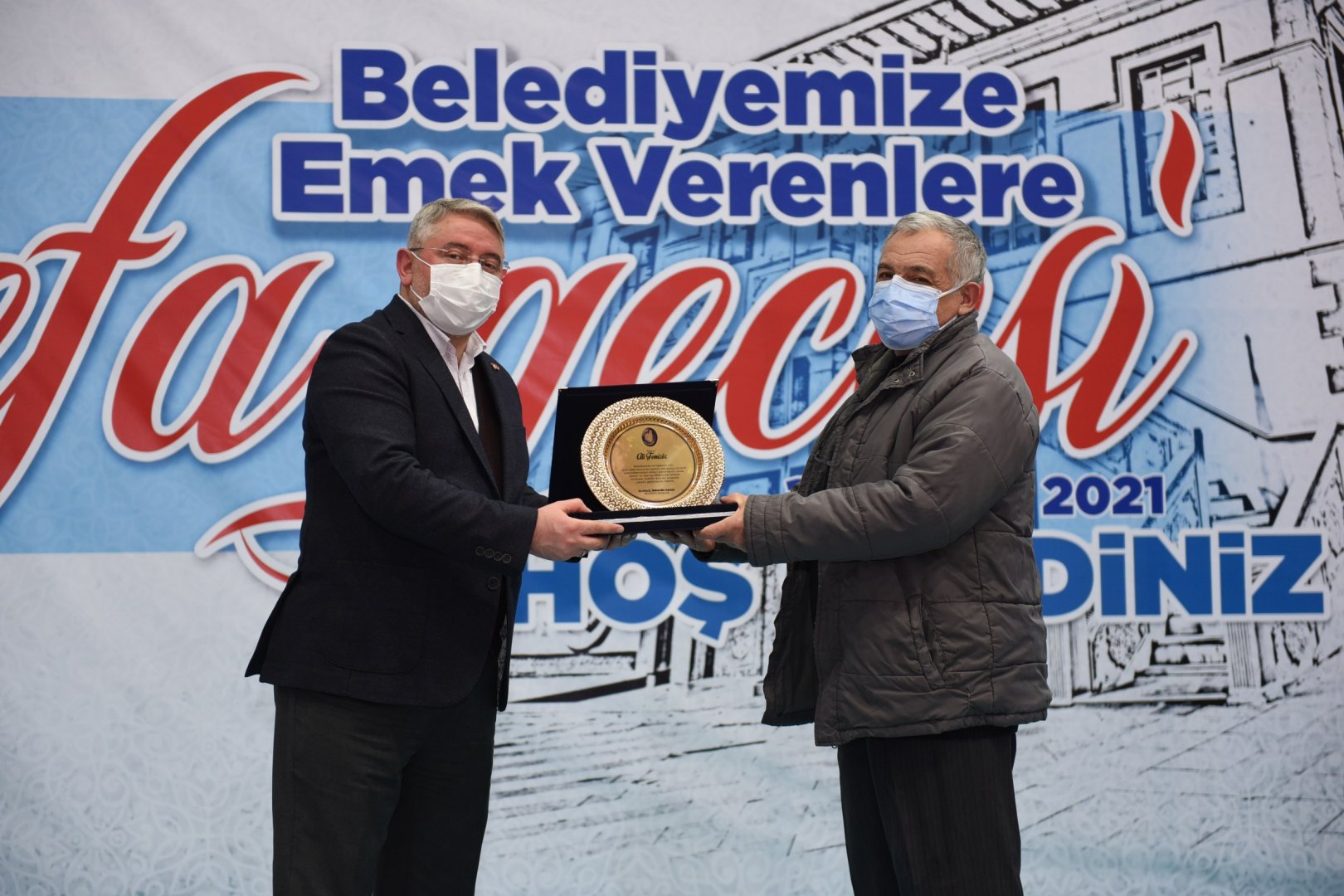Belediye Başkanımız Dr. Halil İbrahim Aşgın, 2019-2020 yılları içerisinde emekli olan belediye personeliyle bir araya geldi. Aşgın, 66 personel için düzenlenen vefa gecesinde emekliye ayrılanlara plaket takdim etti.