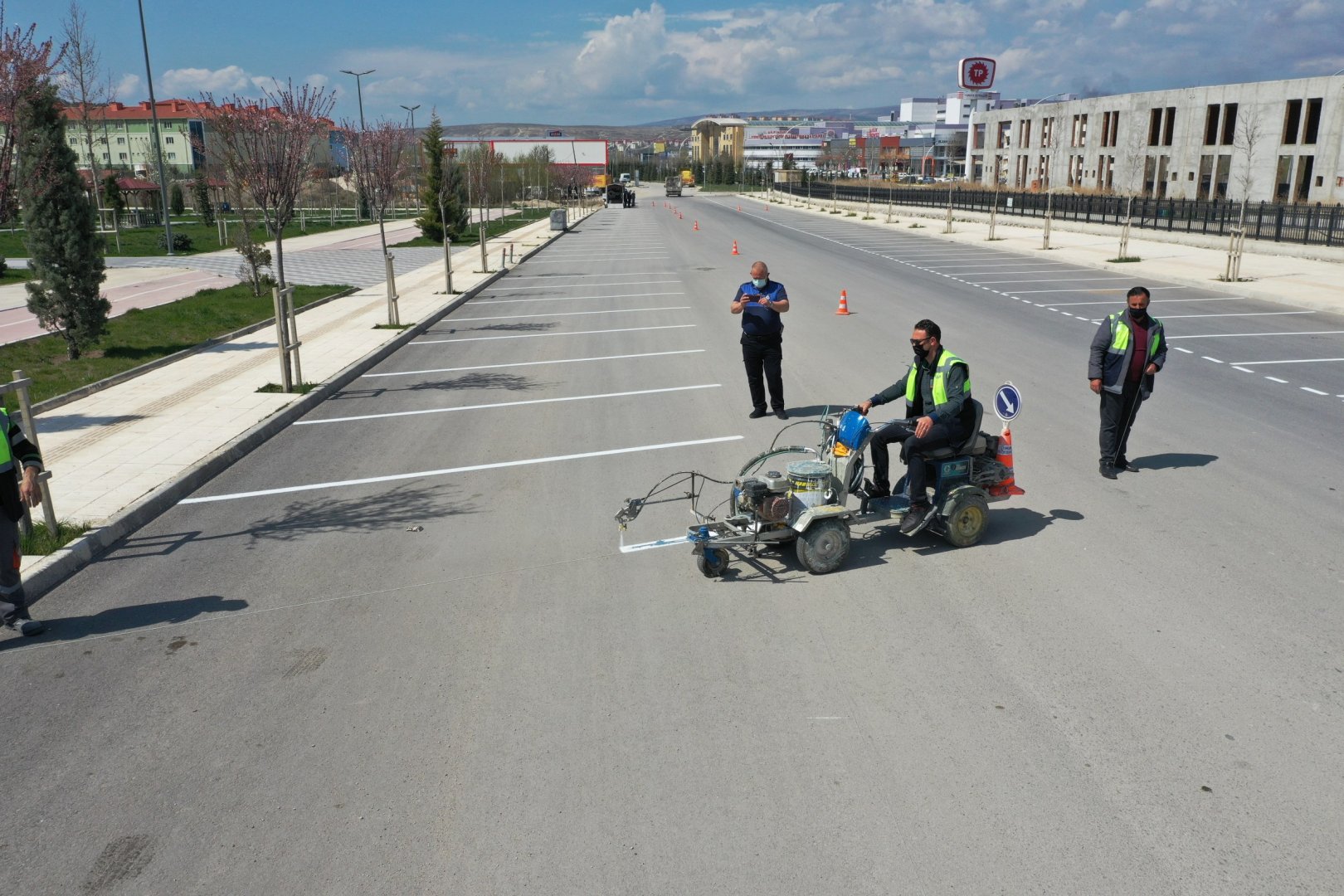 Belediyemiz şehrin güzide parklarından biri olan Erzurum Dede Parkı önünde araçların park yerlerinde yol çizgi çalışması yaptı.