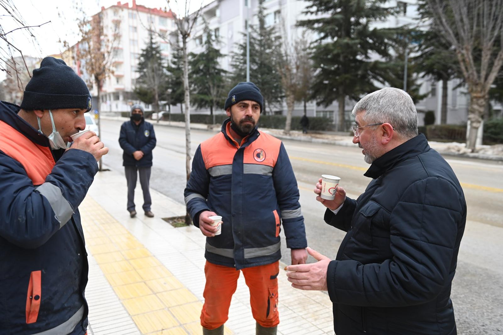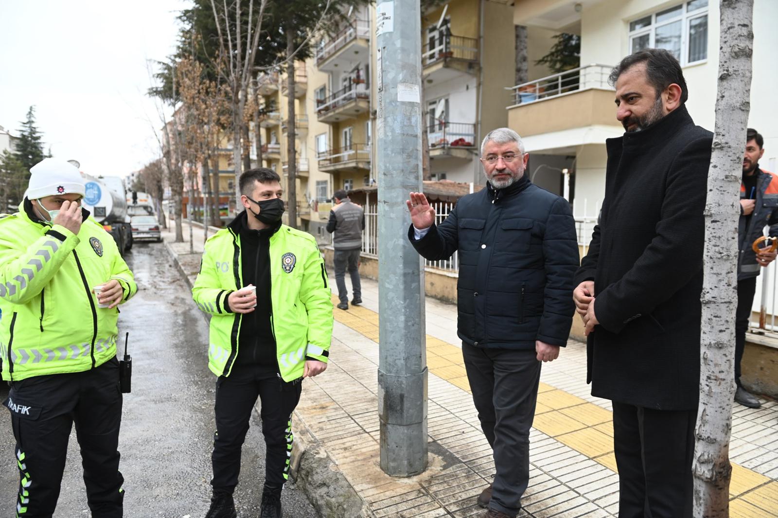 Belediye Başkanımız Dr. Halil İbrahim Aşgın, temizlik faaliyetlerini yerinde inceledi. Kar yağışıyla birlikte hemşehrilerimizin ulaşımda aksamlar yaşamamaları için 350 kamyon yani 7 bin ton tuz dökmüştük. Şuan ekiplerimiz Emek Caddesi, Ata Caddesi başta olmak üzere şehir genelinde yoğun bir şekilde yollarımızı, kaldırımlarımızı pırıl pırıl yapıyor.” dedi.
