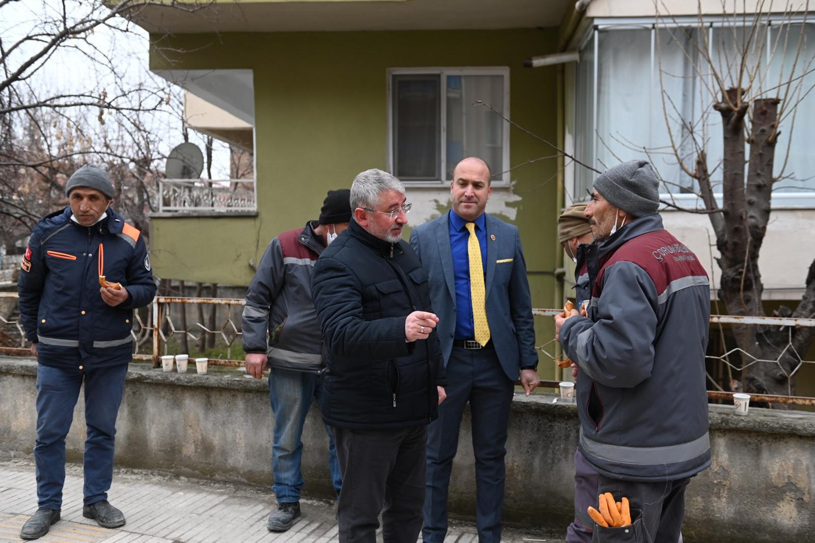 Belediye Başkanımız Dr. Halil İbrahim Aşgın’ın temizleme faaliyetlerini inceleme ziyaretinde Belediye Başkan Yardımcısı İsmail Yağbat ve Gülabibey Mahallesi Muhtarı Hasan Belli de eşlik etti.