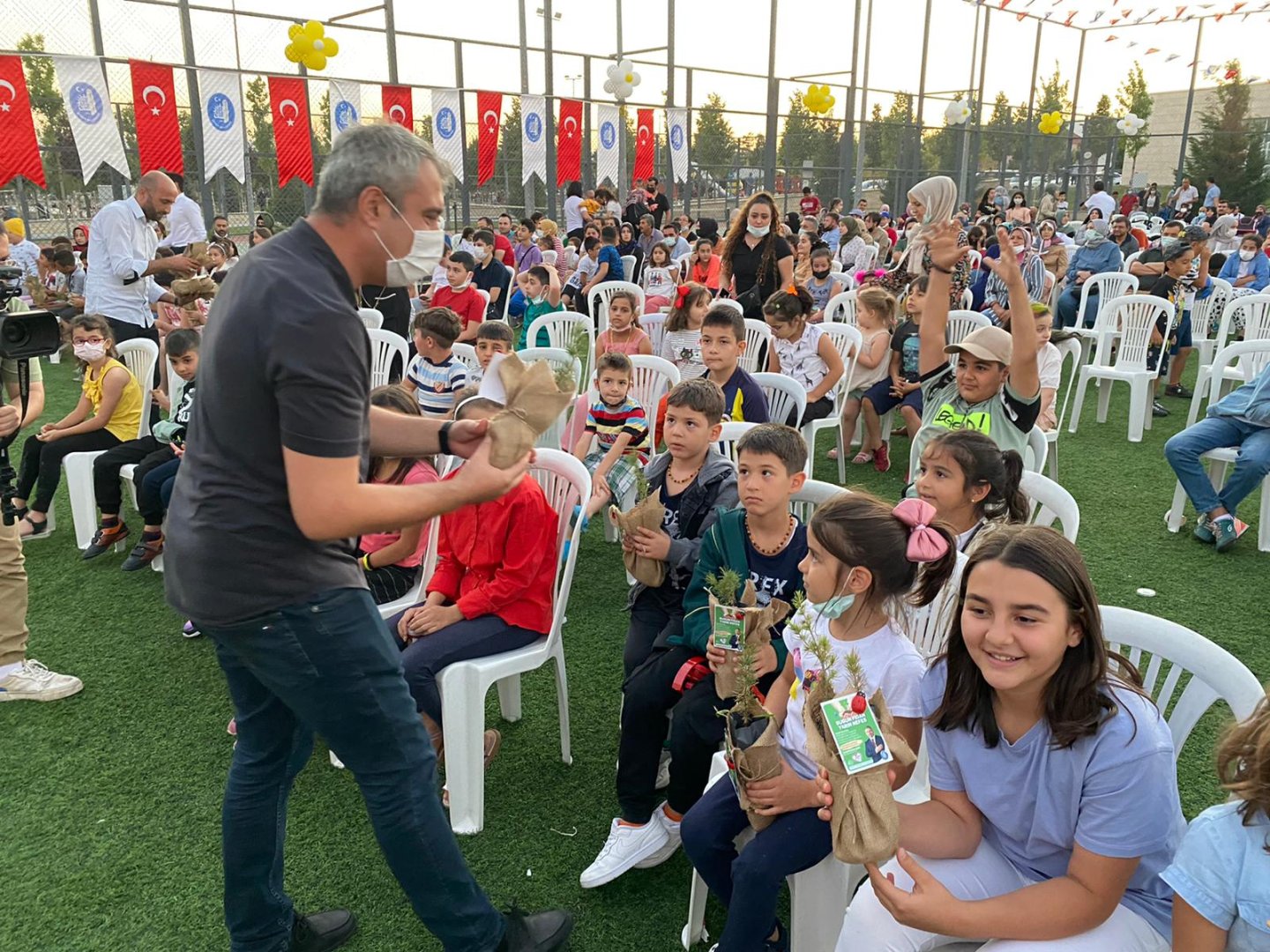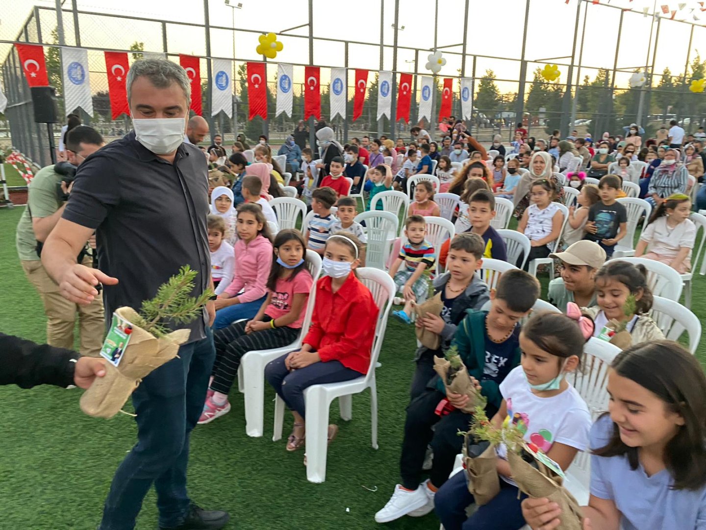 Türkiye’nin birçok farklı noktasında çıkan orman yangınlarının tüm ülkede büyük bir üzüntüye neden olduğunu belirten Belediye Başkanımız Dr. Halil İbrahim Aşgın, Çorum Belediyesi olarak yaptıkları etkinliklere katılanlara fidan dağıtımı yaptıklarını söyledi. Millet Bahçesi içerisinde her Cumartesi gerçekleştirdikleri Çocuk Şenliği ve hafta sonu Çatak’ta gerçekleştirdikleri En Baba Kamp programına katılan çocuklara 500 adet fidan dağıttıklarını kaydeden Başkan Aşgın, “ En Baba Kamp Programımıza katılan babalar ve çocukları bu fidanları toprakla buluşturdu. Çocuk Şenliğimize katılan çocuklarımıza da hediye ettiğimiz fidanlar inşallah en kısa sürede toprakla buluşacak. Ciğerlerimiz hainler tarafından yakılıyorken biz Çorum’dan onlara güçlü bir cevap verdik. Bu fidanları yarın ormana dönüşecek ve ülkemize nefes olacak.” dedi.