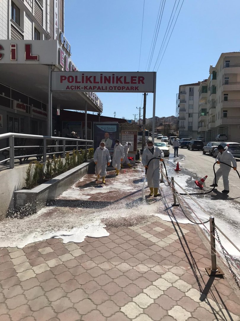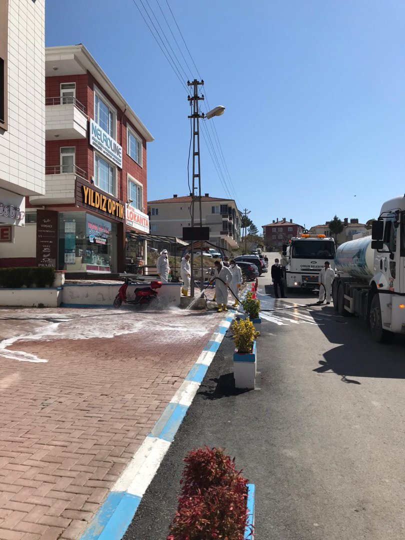 Belediyemiz, koronavirüs tedbirleri kapsamında şehrin genelinde cadde ve sokaklarda yıkama ve dezenfeksiyon çalışmalarını tüm hızıyla sürdürüyor.