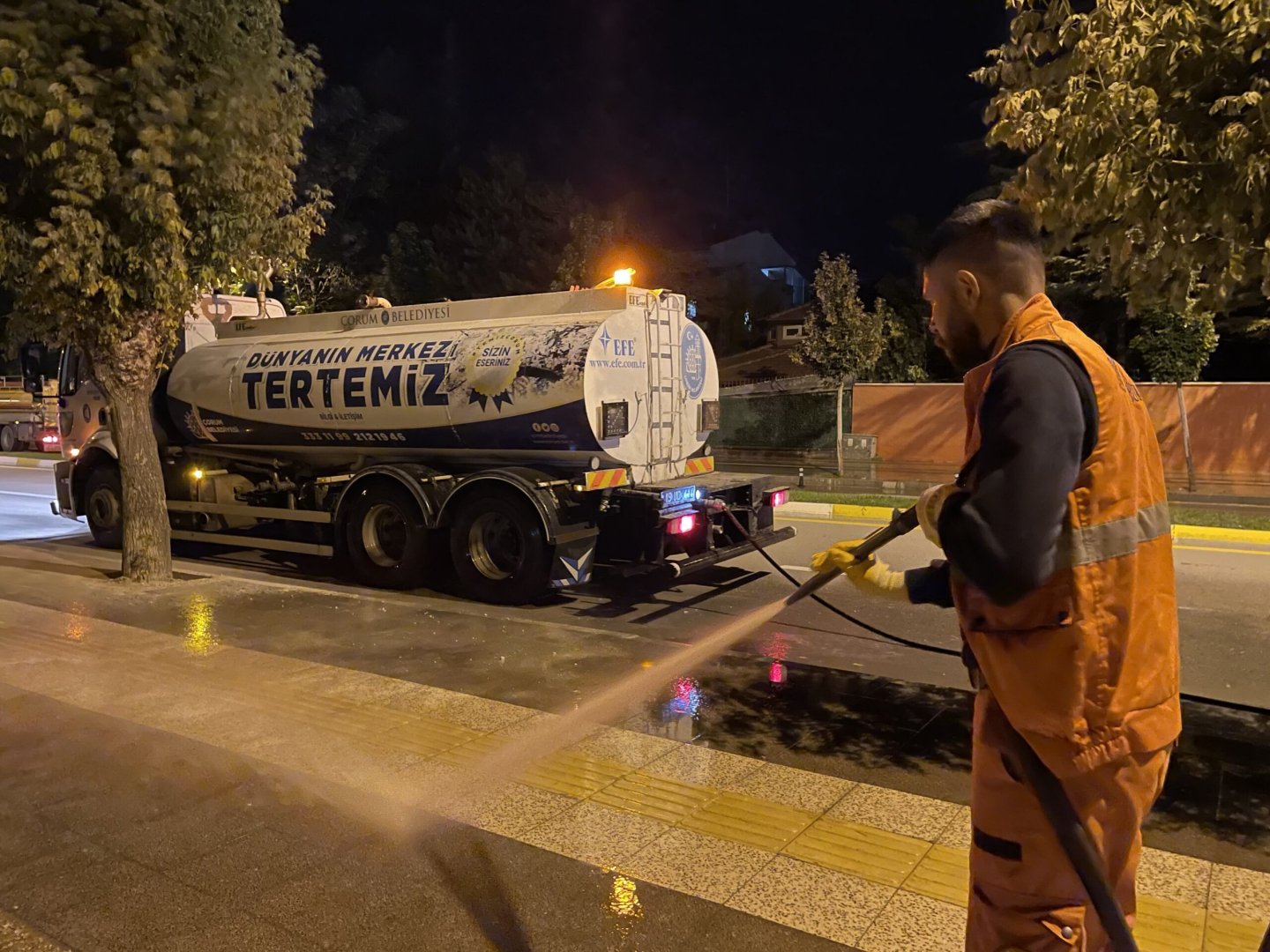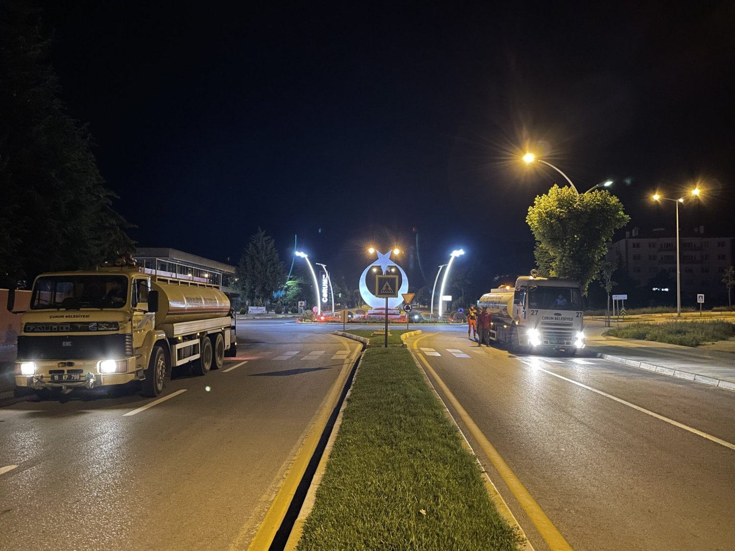 Muhtelif zamanlarda şehrin işlek caddelerini yıkayan Belediye ekipleri Kurban Bayramı öncesi Çorum’un yaya yoğunluğu fazla olan caddelerinde yıkama yaparak şehri Kurban Bayramına hazırlıyor.