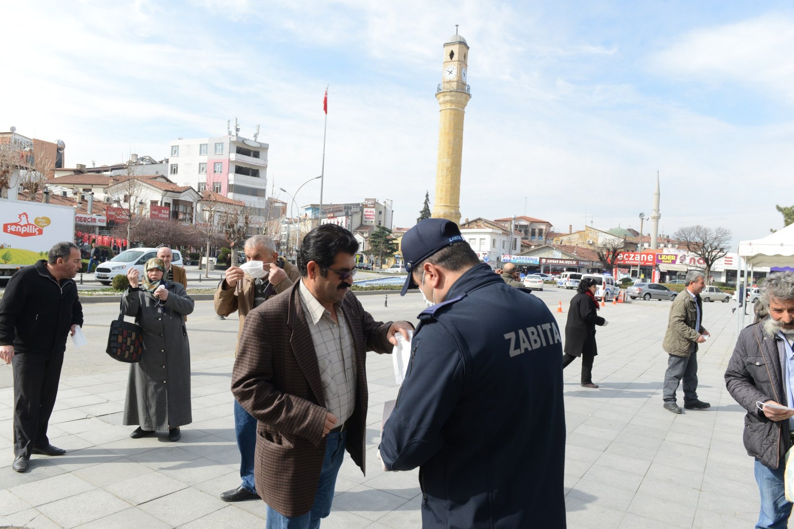Zabıta ekipleri Corona Virüsü nedeniyle vatandaşlara maske dağıttı.