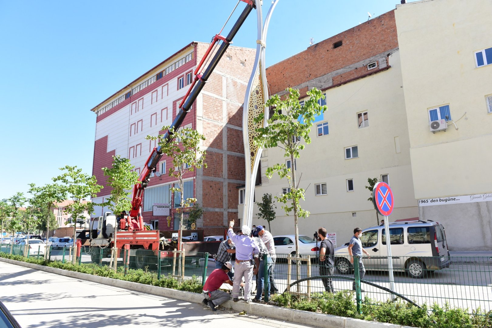 Asfaltı tamamlanan Recep Tayyip Erdoğan Caddesi’nde tretuvar, orta refüj ağaçlandırma ve aydınlatma çalışmalarına başlayan caddede Selçuklu motiflerini barındıran özel aydınlatma direklerinin montaj çalışmalarının da devam ettiğini dile getiren Belediye Başkanımız Dr. Halil İbrahim Aşgın, aydınlatma direklerinin de tamamlanmasıyla birlikte Recep Tayyip Erdoğan Caddesi’nin daha estetik bir görünüme kavuşacağını ifade etti.