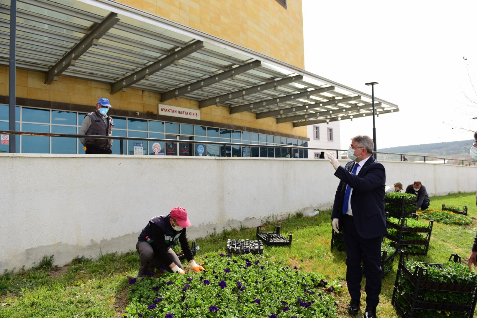 Bu süreçte yaptıkları çalışmalarla sağlık çalışanlarının hep yanında olduklarını gösterdiklerini dile getiren Başkan Aşgın, “Sağlık çalışanlarımıza yönelik ücretsiz servis tahsis ettik, toplu taşımayı ücretsiz hale getirdik. Sağlık çalışanlarımıza yönelik çeşitli ikramlarımız oldu. Zaman zaman motivasyon ziyaretleri gerçekleştiriyoruz. Bugün de bu ziyaretlerimizin bir yenisini gerçekleştirdik. Bahar geldi her yer yeşillendi, çiçekler açtı. Bu çiçekleri sağlık çalışanlarımızın ayaklarına getirdik. Hastane bahçesinde 3 bin metrekarelik bir alanda çevre düzenlemesi, çiçek dikimi ve çim ekimi yaptık.” dedi.