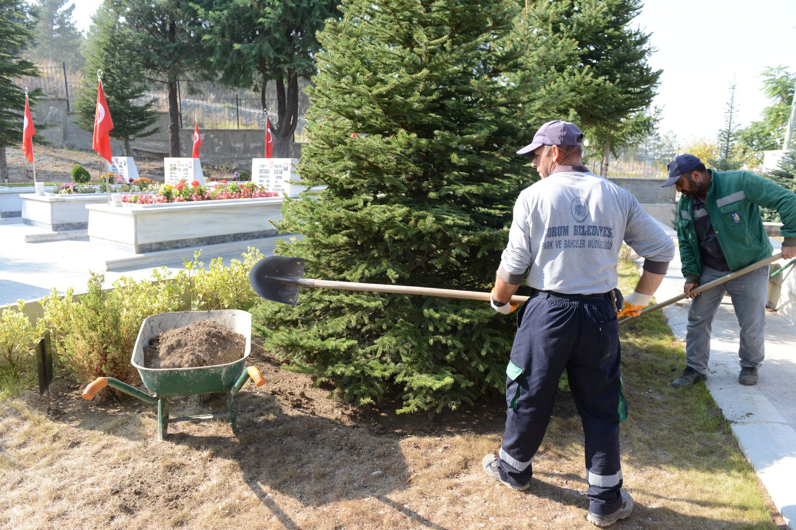 Yapılan çalışmalar hakkında bilgiler veren Belediye Başkanımız Dr. Halil İbrahim Aşgın “Geçtiğimiz haftalarda Çorum Valiliğimizle protokol imzalayarak Belediyemizin sınırları içerisindeki Şehitliklerin ve şehit mezarlarının bakımlarını belediyemize almıştık. Hemen harekete geçerek şehitliğimiz içerisinde Park ve Bahçeler Müdürlüğü’ne bağlı ekiplerimiz çalışmalara başladı. Şehit mezarlarımızın yanında bulunan alanda çimleme çalışması yapıyoruz. Aynı zamanda ağaçlarda da budama çalışmaları gerçekleştireceğiz. Çorum sınırları içerisinde yer alan tüm şehit mezarlarımızda ve şehitliklerimizde de düzenleme çalışması yapacağız. Ülkemizin bölünmez bütünlüğünün savunulması noktasında gözlerini kırpmadan canlarını, kanlarını hiçe sayarak şahadet şerbetini içen şehitlerimizin kabirlerinin temiz, bakımlı olması için tüm ekiplerimizle çalışacağız.  Şehitlerimizin ruhu şad olsun, gazilerimize rabbim sağlıklı uzun ömürler ihsan eylesin. Onların hizmetkarı olmaktan onur ve kıvanç duyuyoruz” şeklinde konuştu.