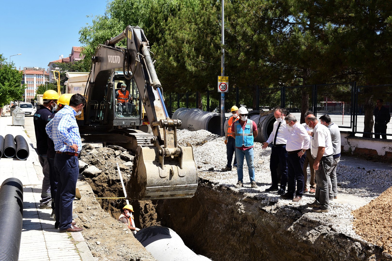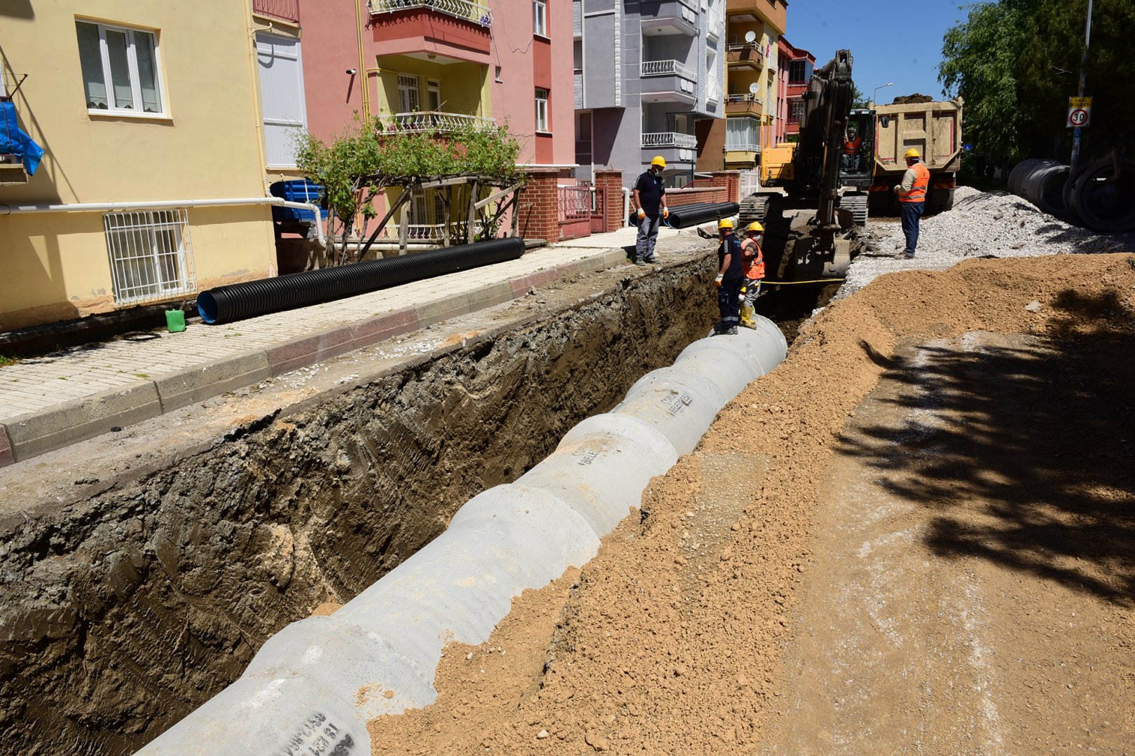 Şehrin muhtelif yerlerinde alt ve üst yapı çalışmalarına devam eden belediyemiz, yağmur suyu hatlarını yeniliyor. Tekceviz 12. Sokaktan geçen ve Çomar Deresine kadar 1200 metre yağmur suyu hat çalışmasını yerinde inceleyen Belediye Başkanımız Dr. Halil İbrahim Aşgın, “Alt yapısı sorunlu bölgelerde çalışmalarımıza devam ediyoruz. Perşembe Pazarı ile Binevler bölgesinden başlayarak Tekceviz 12. Sokaktan geçen ve Çomar Deresine kadar uzanan 1200 metrelik yağmur suyu hattı çalışmalarımız hız kesmeden devam ediyor. Yağmur suyu hat çalışmalarımız sırasında eskiyen içme suyu hatlarını da yeniliyoruz. Aynı zamanda asbestli boruları da daha uzun ömürlü olan polietilen borularla değiştiriyoruz. Ayrıca çalışmalarımız esnasında rastladığımız yıpranmış kanalizasyon kanallarını da yeniliyoruz. Alt yapı çalışmalarımız bittiğinde bölgenin asfalt çalışmalarını da kısa sürede tamamlayacağız. ” dedi.