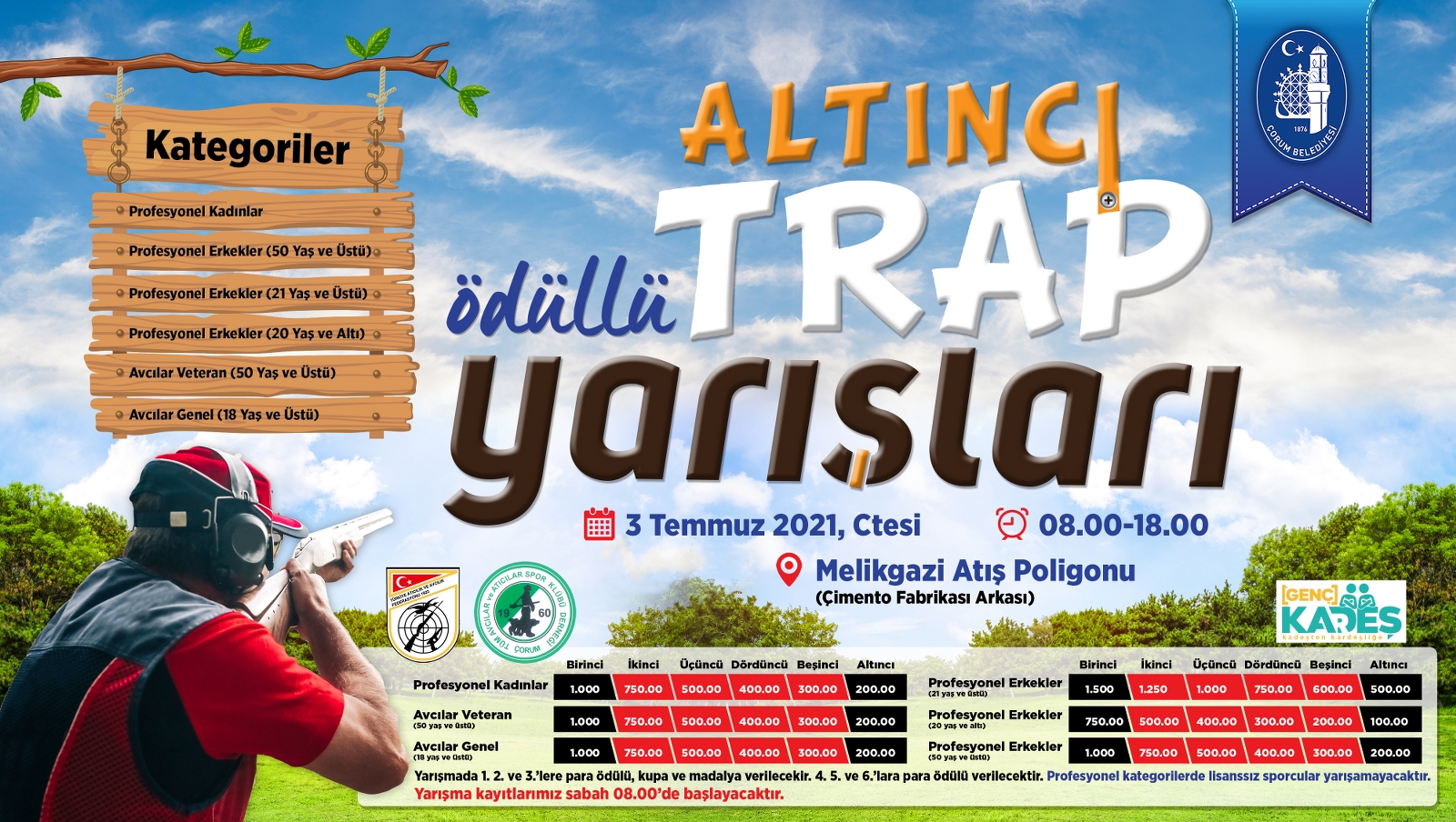 Belediyemiz tarafından bu yıl 6.’sı gerçekleştirilecek olan trap yarışları 3 Temmuz 2021 Cumartesi günü yapılacak. Çorum’u sporla anılan bir şehir haline getiren belediyemiz, sporun her branşına destek olmaya devam ediyor.