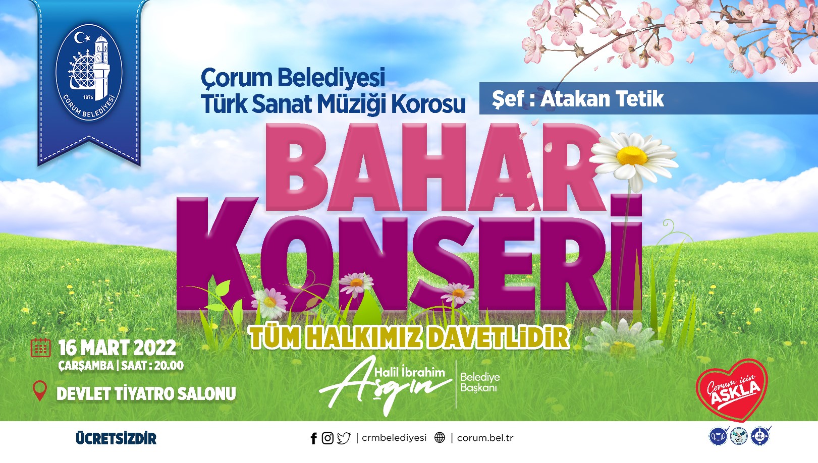 Belediyemiz Türk Sanat Müziği Korosu, 16 Mart Çarşamba günü gerçekleşecek konserde birbirinden güzel eserleri Çorumlu müzikseverlerin beğenisine sunacak.