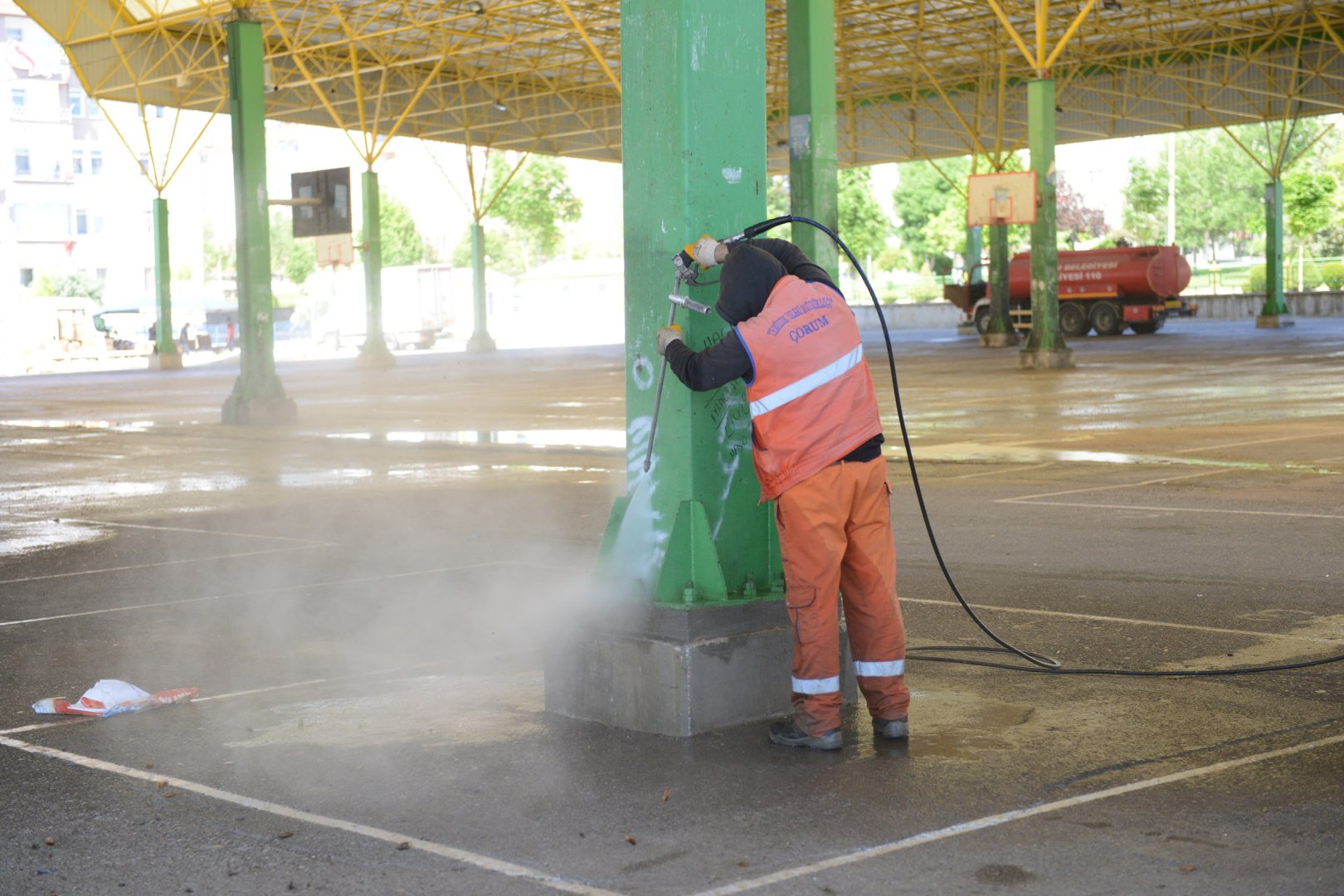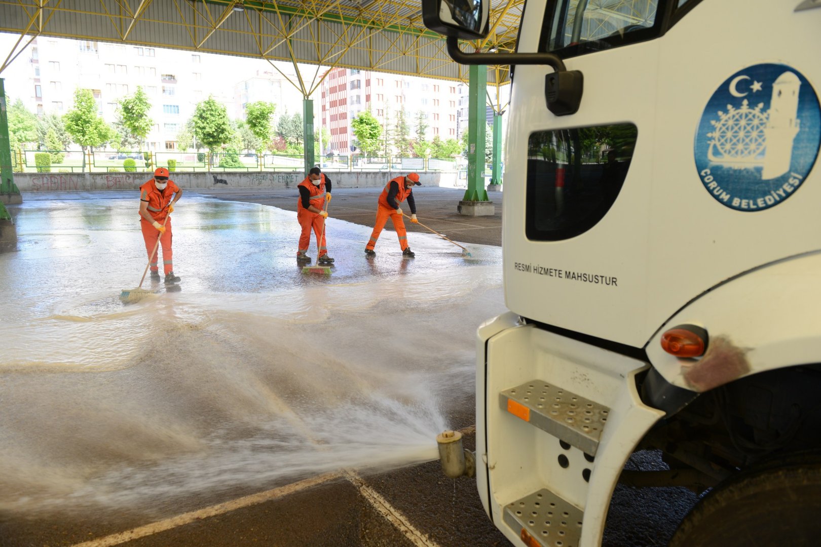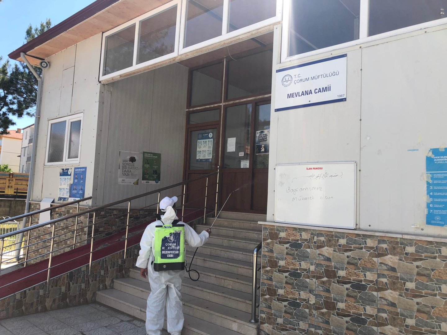 Çorum Belediyesi, 29 Mayıs tarihi itibariyle öğle, ikindi ve Cuma namazlarının cemaatle kılınacağı camilerde dezenfeksiyon çalışmalarını yürütürken diğer yandan da cemaatle namaz kılınması için İl Müftülüğü tarafından belirlenen okul bahçeleri ve pazar yerlerinde de çalışmalarını sürdürüyor.