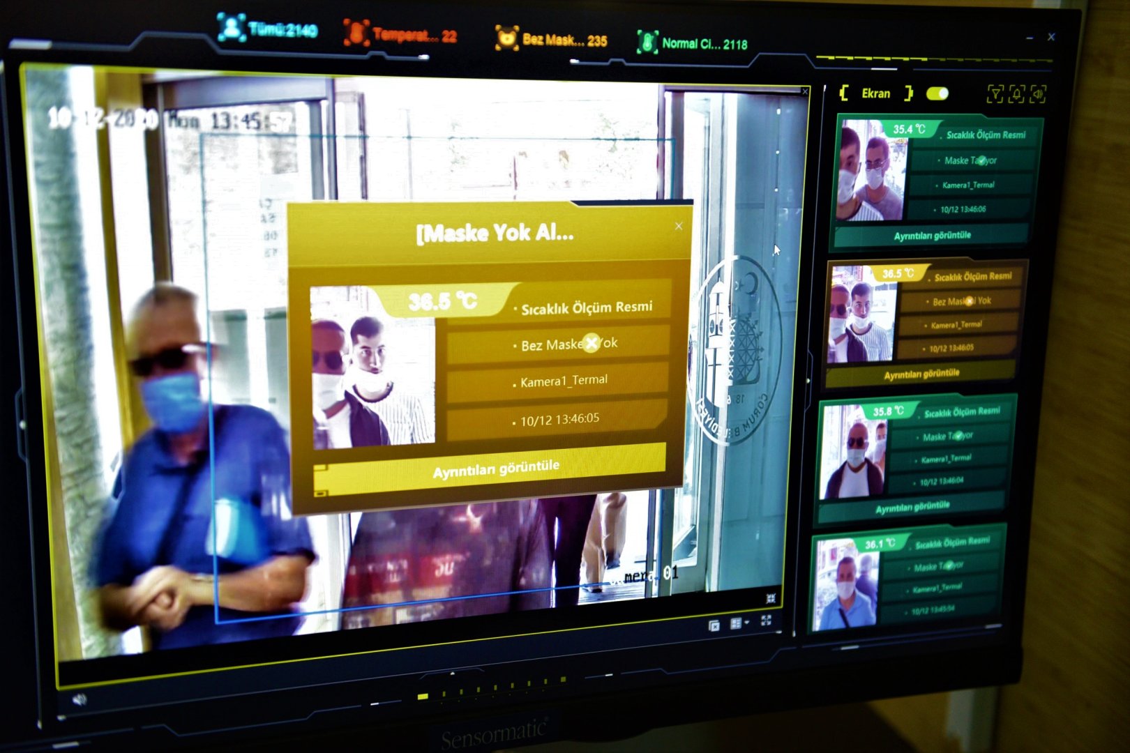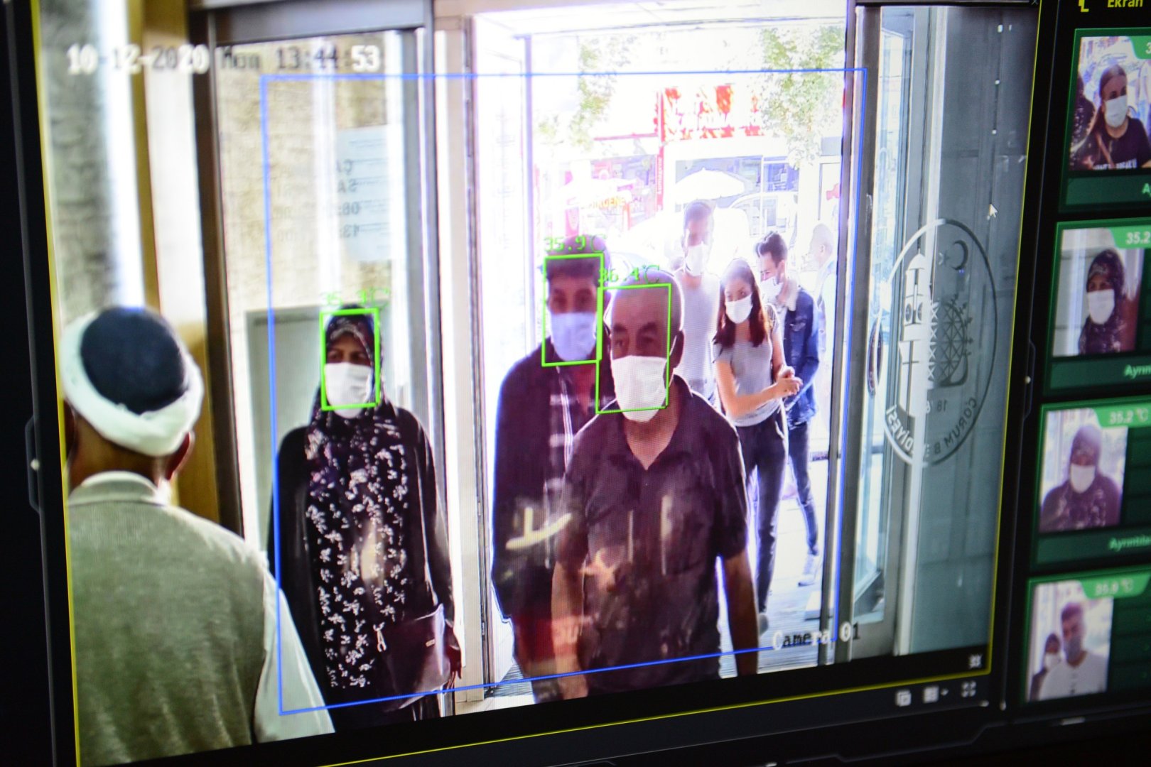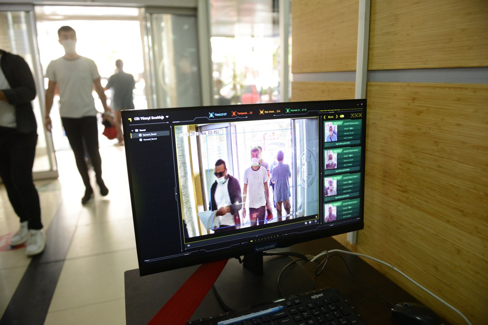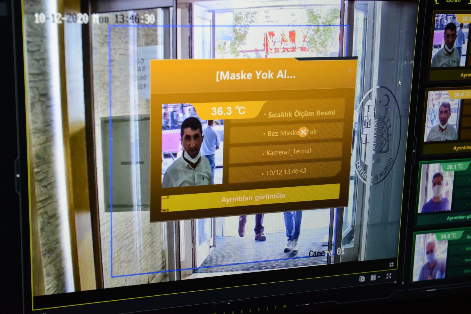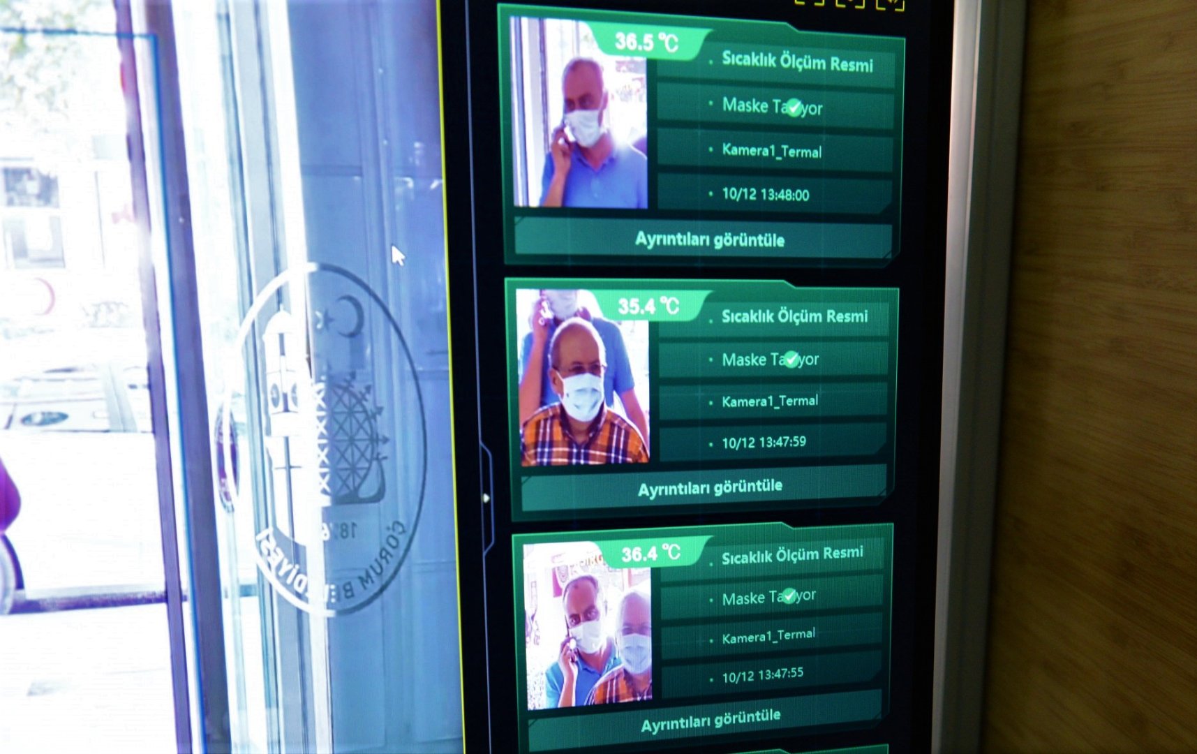 Covid-19 tedbirleri kapsamında çalışmalarını gece-gündüz sürdüren belediyemiz, bu tedbirler kapsamında gelişen teknolojiyi de kullanmayı ihmal etmiyor. Hizmet binası girişine yerleştirilen ‘’ateş ölçer termal kamera‘’  sistemi ile binaya aynı anda giriş yapan birçok vatandaşın vücut ısısı eş zamanlı olarak ölçülebiliyor. Aynı zamanda bu sistem maske takmayan veya maskeyi uygun şekilde takmayan vatandaşları da tespit edip görevlileri uyarabiliyor.