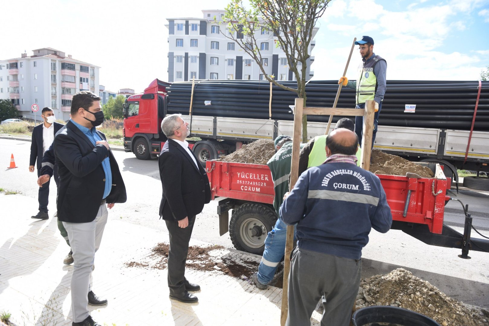 Çalışma sezonunun sonlarına yaklaştıklarını belirten Belediye Başkanımız Dr. Halil İbrahim Aşgın, “Ekiplerimiz şehir genelinde çalışma programlarında yer alan işleri bitirme gayretindeler. Ekiplerimiz, Mahmutevler Caddesi’nde ağaçlandırma çalışmalarına büyük bir hızla devam ediyor. Cadde ve sokaklarımıza süs elması, ıhlamur ağaçları, süs armutları, çınar yapraklı ağaçlar, çınar yapraklı dut ağaçları ve süs kirazlarını toprakla buluşturuyoruz. Daha yeşil bir Çorum için bitki ve ağaçlandırma çalışmalarımız hız kesmeden devam edecek.” dedi.