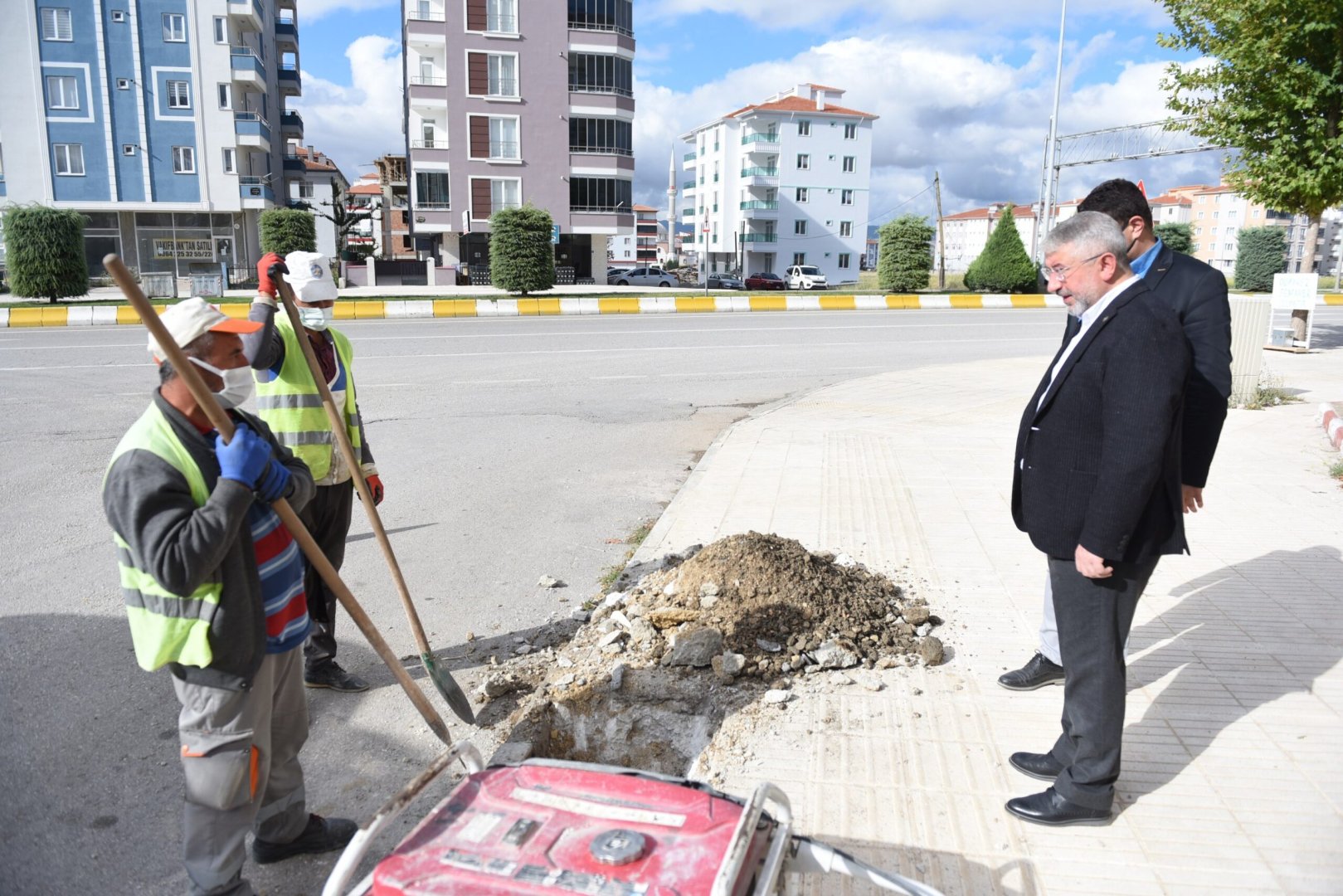 Belediye Başkanımız Dr. Halil İbrahim Aşgın, alt ve üstyapısı yenilenmiş sokak ve caddelerde devam eden ağaçlandırma çalışmalarını ziyaret ederek ağaç dikme çalışmaları hakkında Park ve Bahçeler Müdürü Gökhan Mesci’den bilgiler aldı.