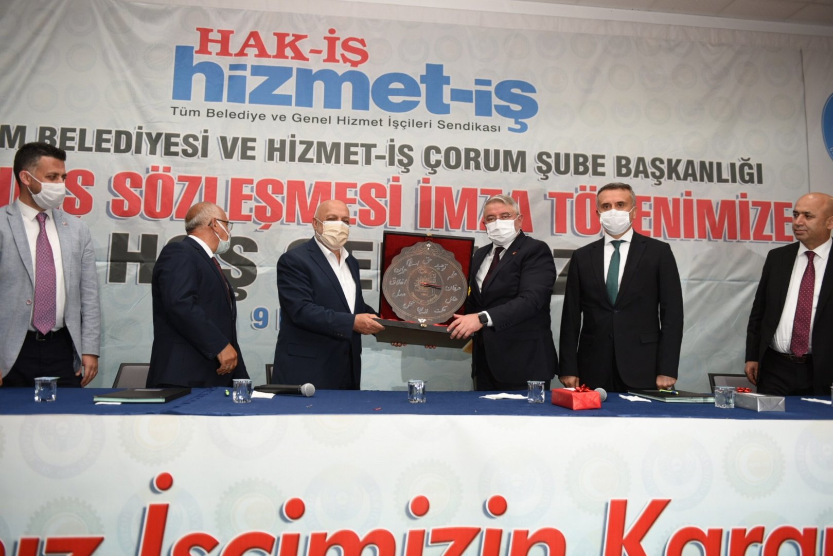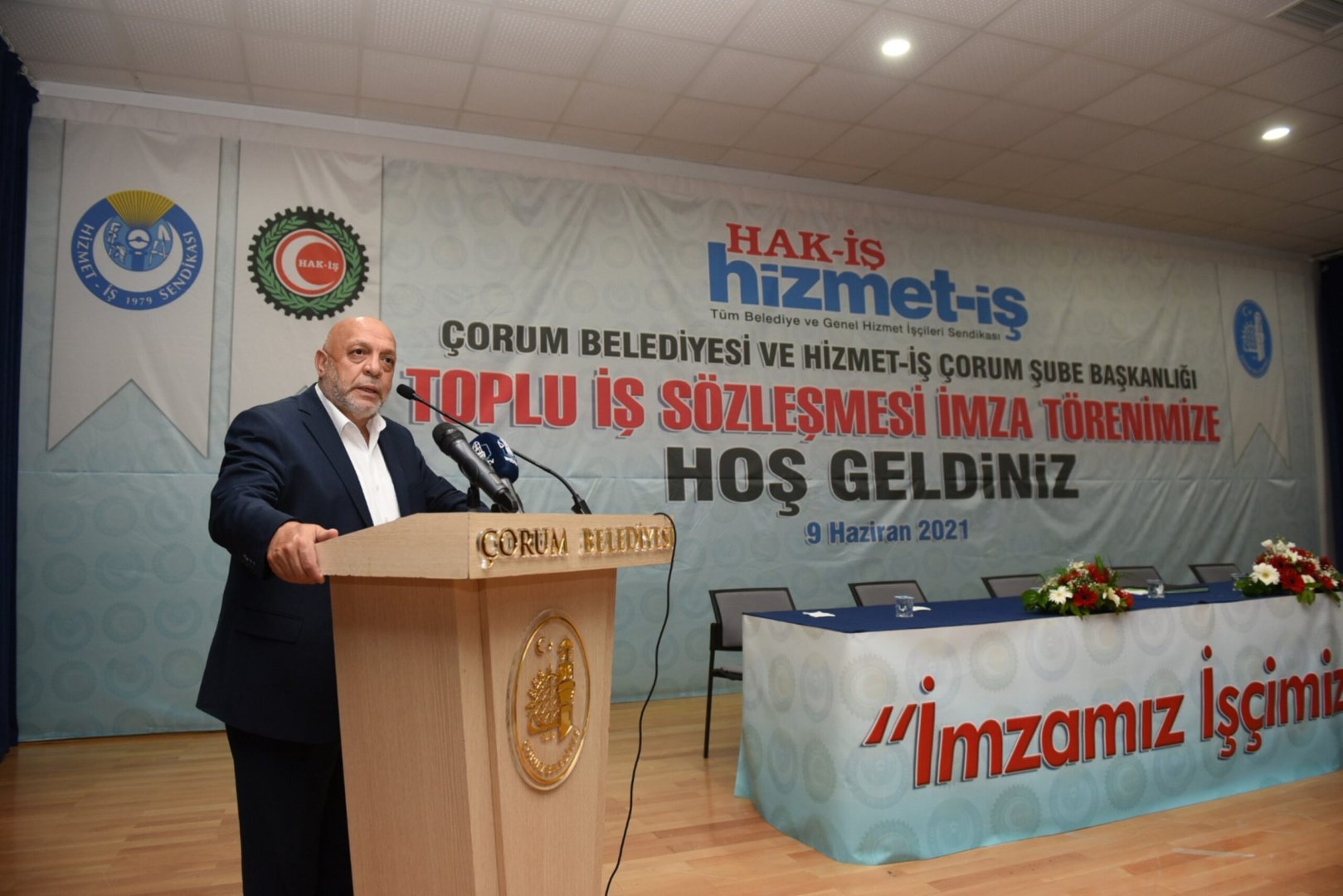 Hak İş Konfederasyonu ve Hizmet İş Sendikası Genel Başkanı Mahmut Arslan, bu zamana kadar yüzlerce sözleşme imzaladıklarını belirterek “Bu zamana kadar edindiğim tecrübelerime dayanarak ifade etmeliyim ki çok iyi bir sözleşme oldu. Sözleşmenin bu hale gelmesinde başta Sayın Belediye Başkanımız olmak üzere tüm emeği geçenlere şükranlarımı sunuyorum” dedi.