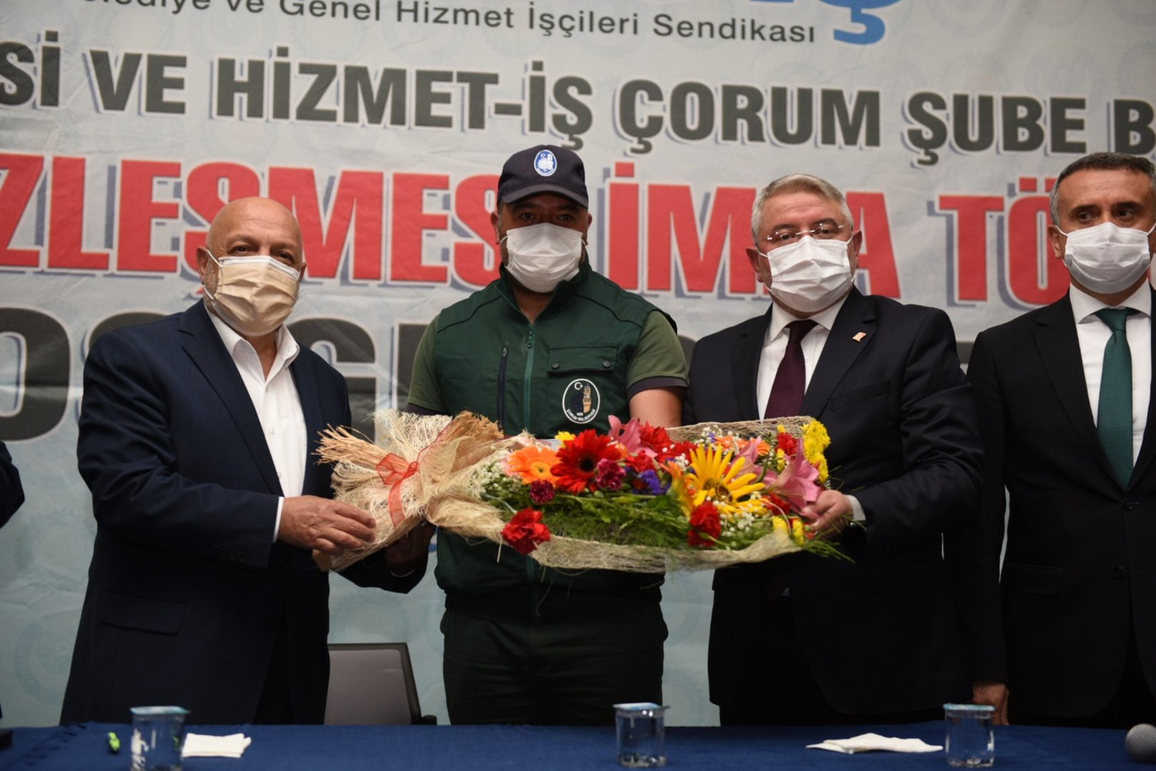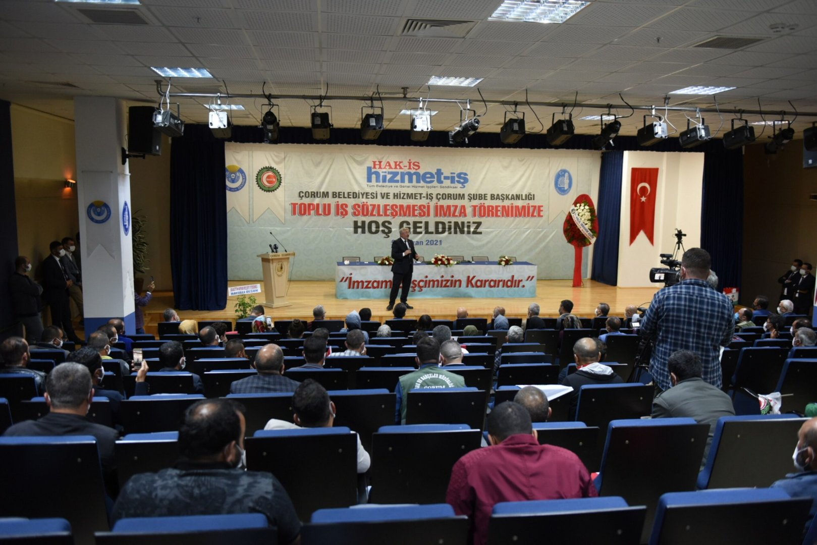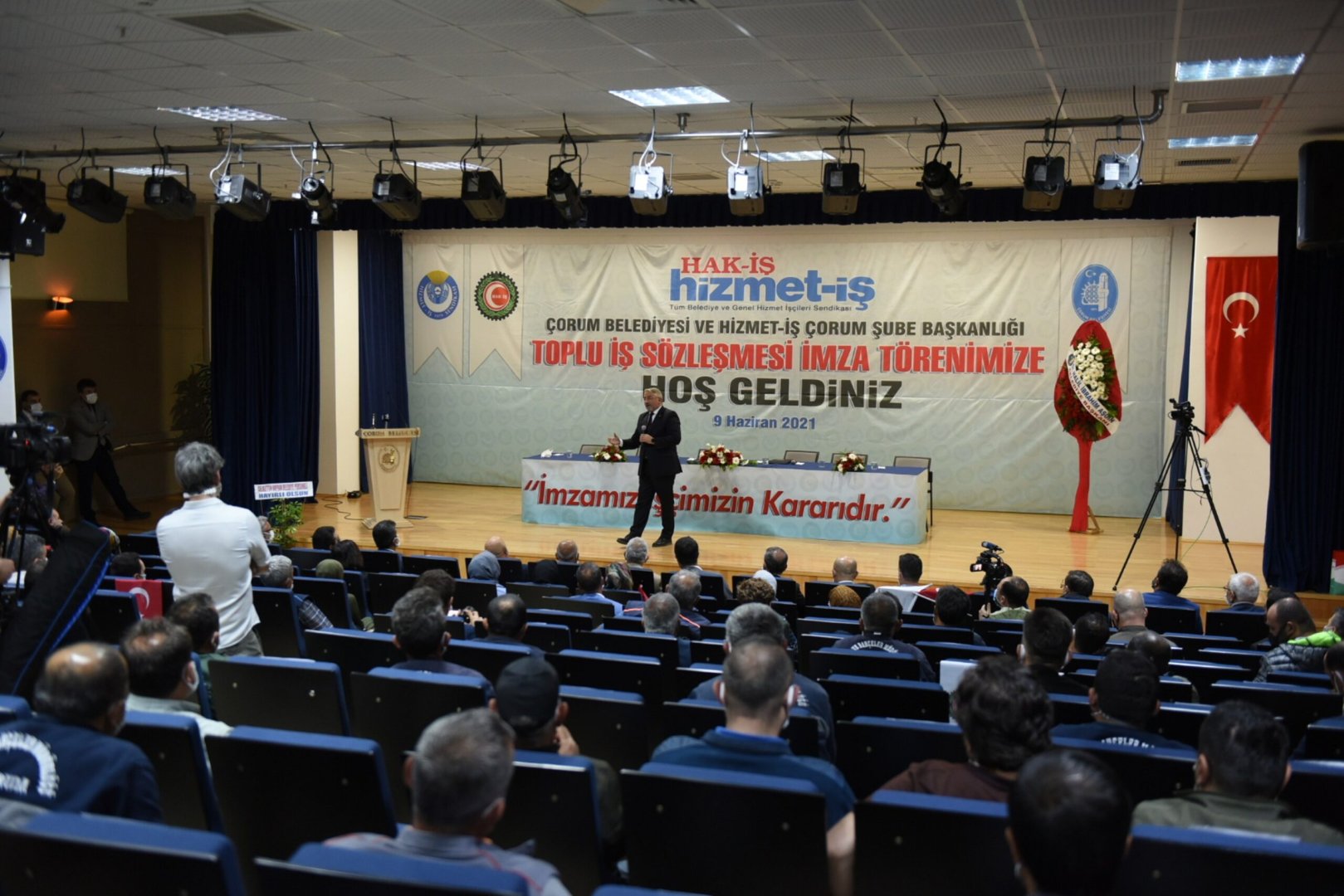 Arslan, “İmzalayacağımız sözleşmenin hükümleri çok güzel. İşini doğru yapan hiçbir arkadaşımızın iş güvencesi endişesi yok. İstanbul’da dahi yaptığımız sözleşmelerden daha iyi maddeleri olan bir sözleşme olduğunu görüyoruz. Belediyelerde zorunlu olmadığı halde 52 günlük ikramiyeyi işçisine veren bir Belediye Başkanımız var.