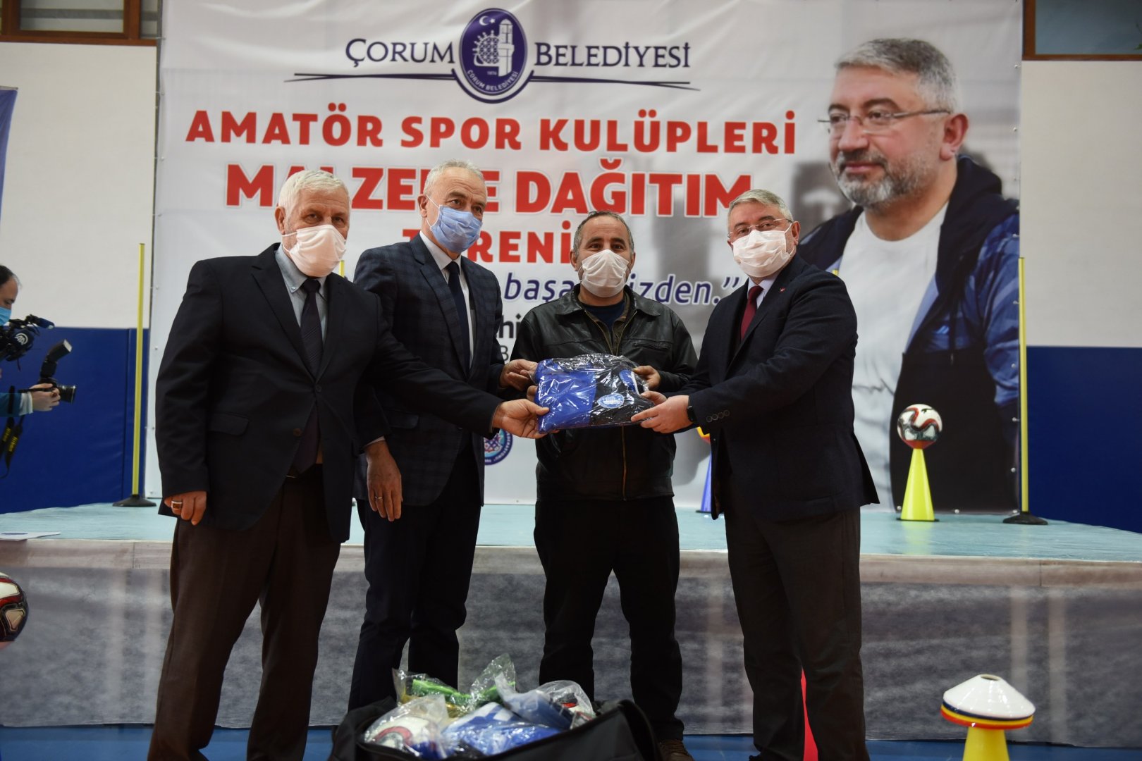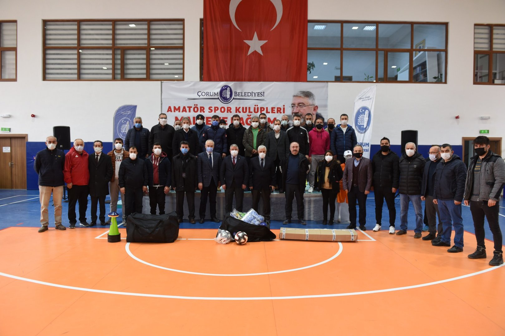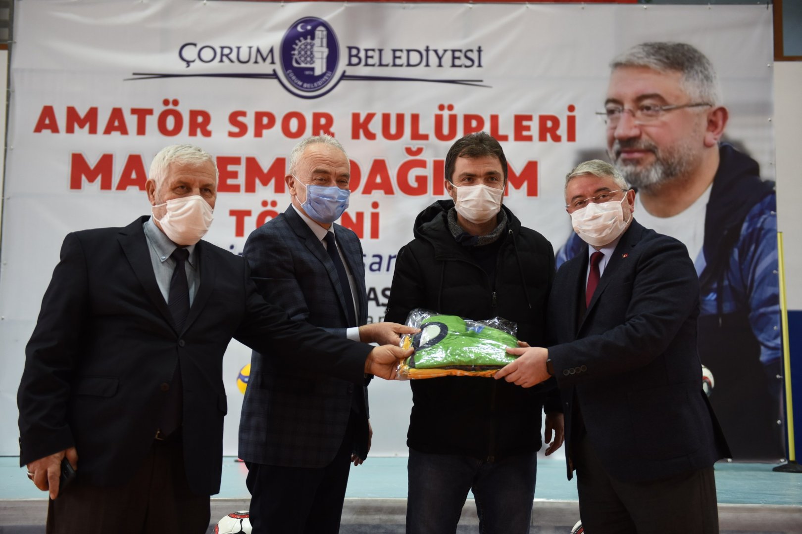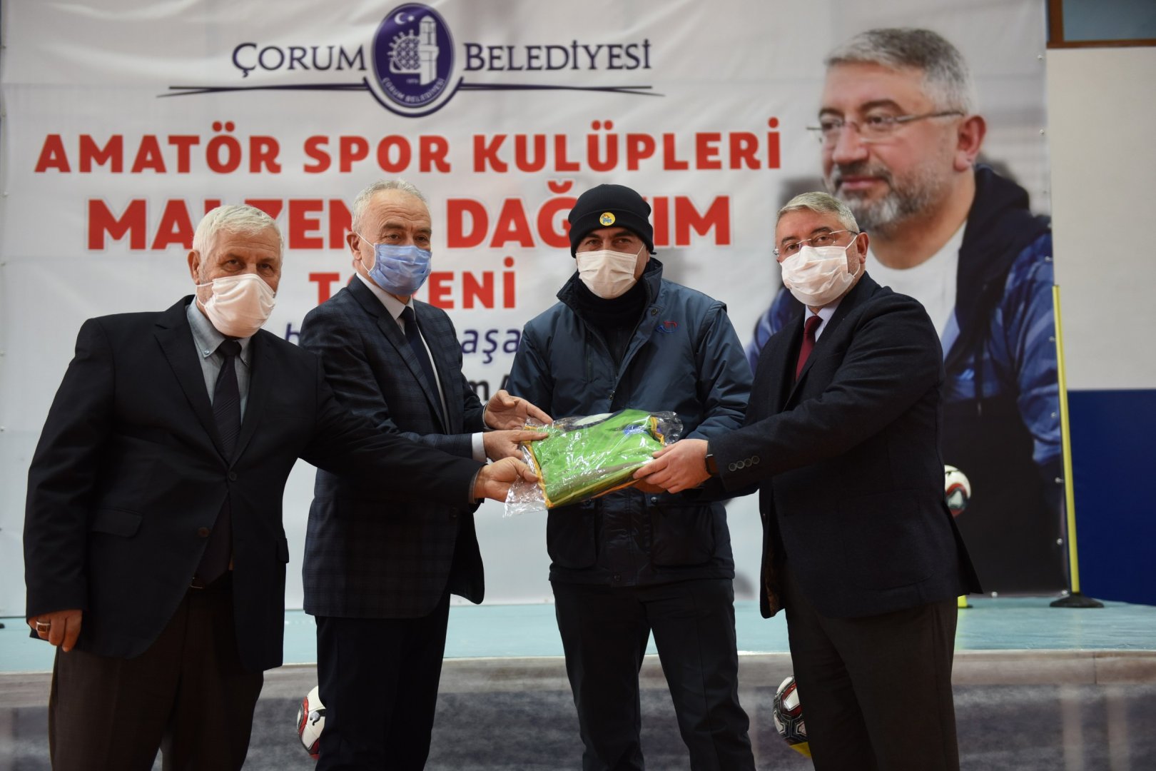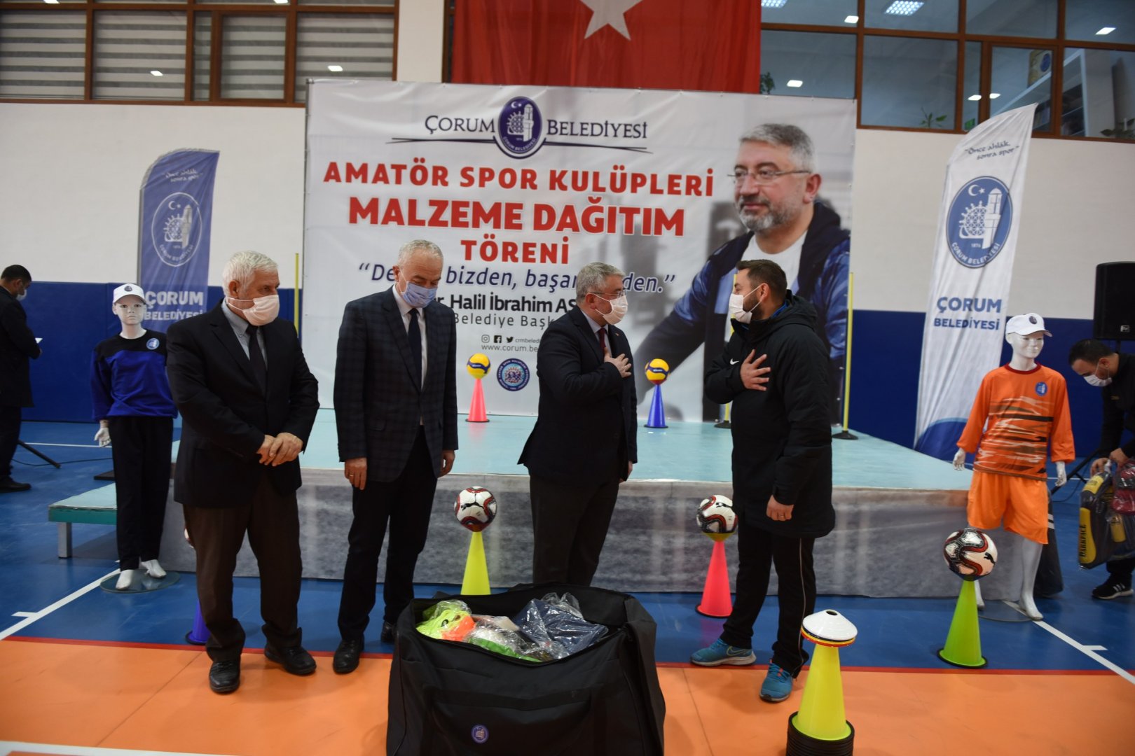 Belediyemiz tarafından Çorum Amatör Spor Kulüpleri Federasyonu aracılığı ile kulüplere yapılan malzemeler düzenlenen törenle dağıtıldı. Abdullah Tayyip Olçok Spor Salonu’nda düzenlenen malzeme dağıtım törenine Belediye Başkanımız Dr. Halil İbrahim Aşgın, Gençlik Hizmetleri ve Spor İl Müdürü Haşim Eğer, Belediye Başkan Yardımcısı Turhan Candan, Çorum Amatör Spor Kulüpleri Federasyonu Başkanı Sefer Kurtaran ile Yönetim Kurulu üyeleri ile birlikte malzeme yardımı yapılan 21 kulüp temsilcileri hazır bulundular.