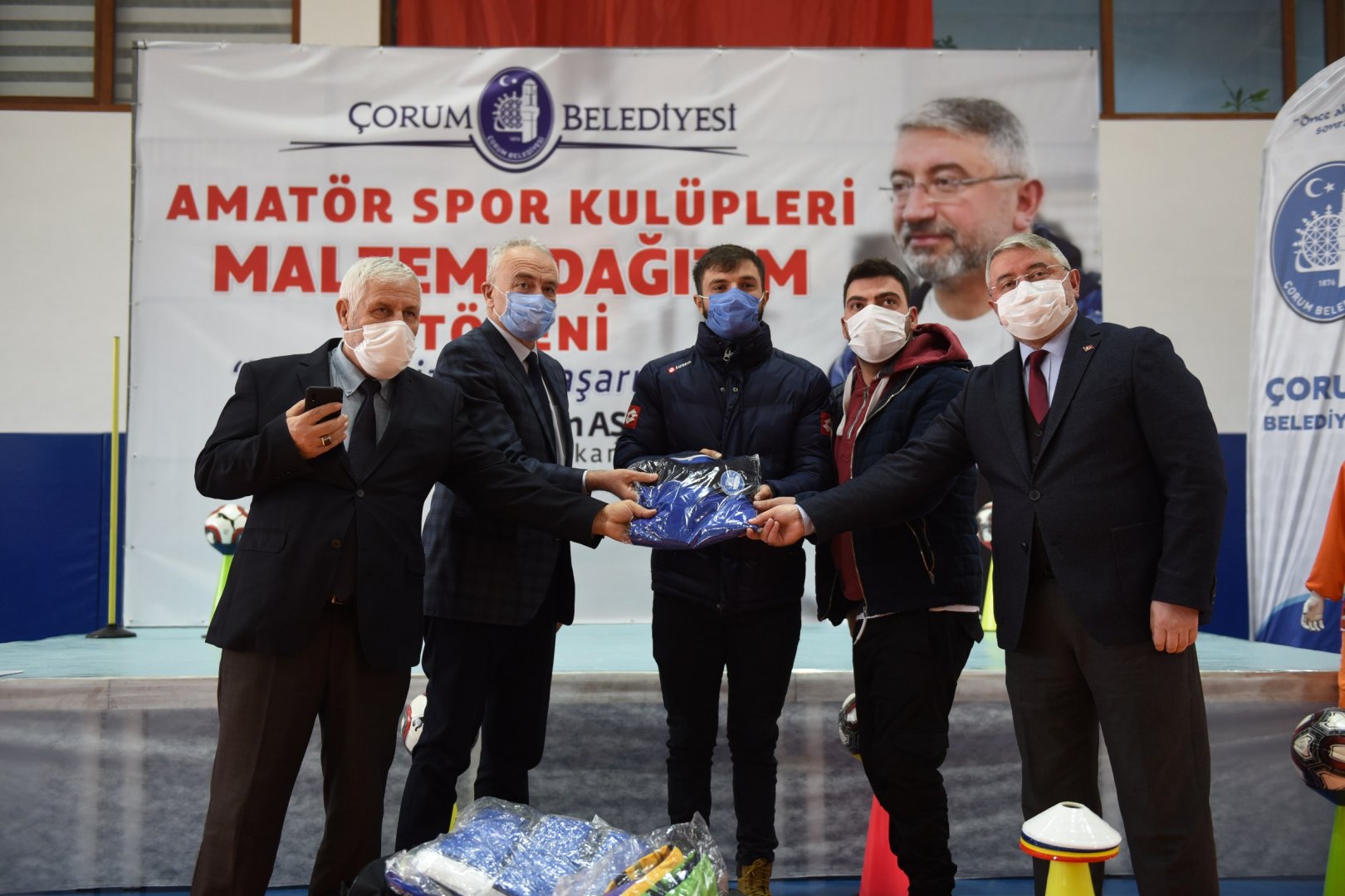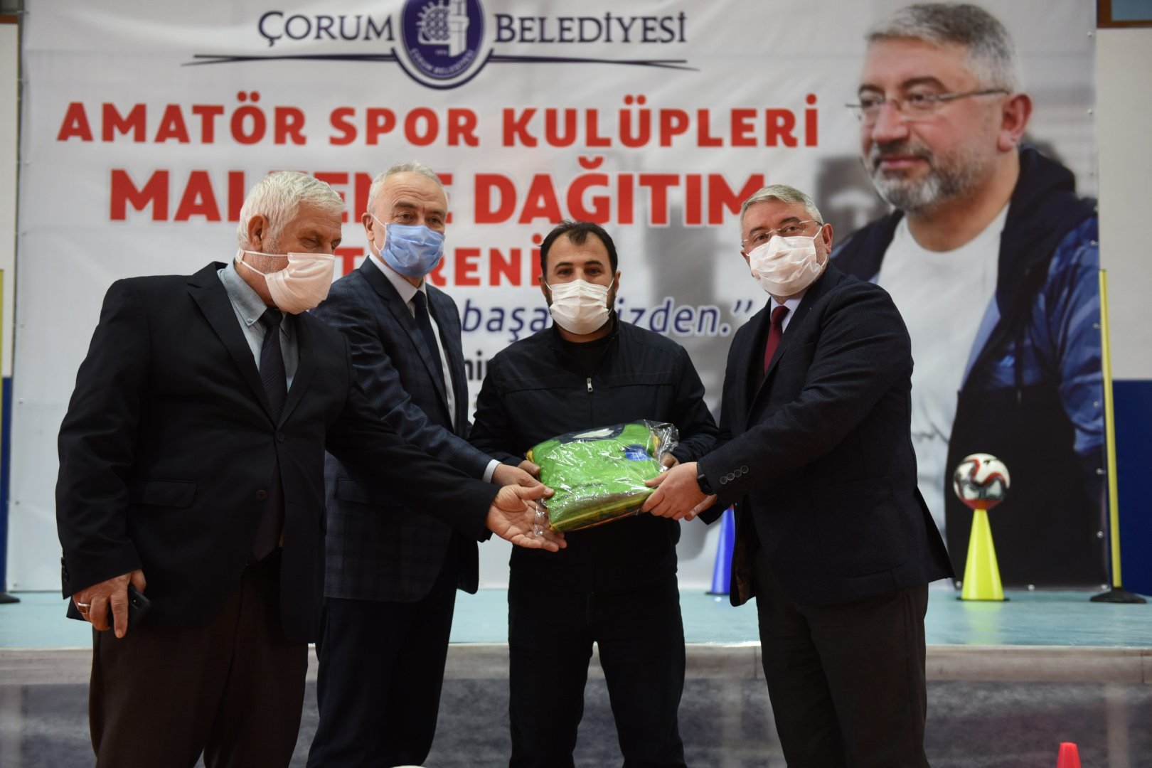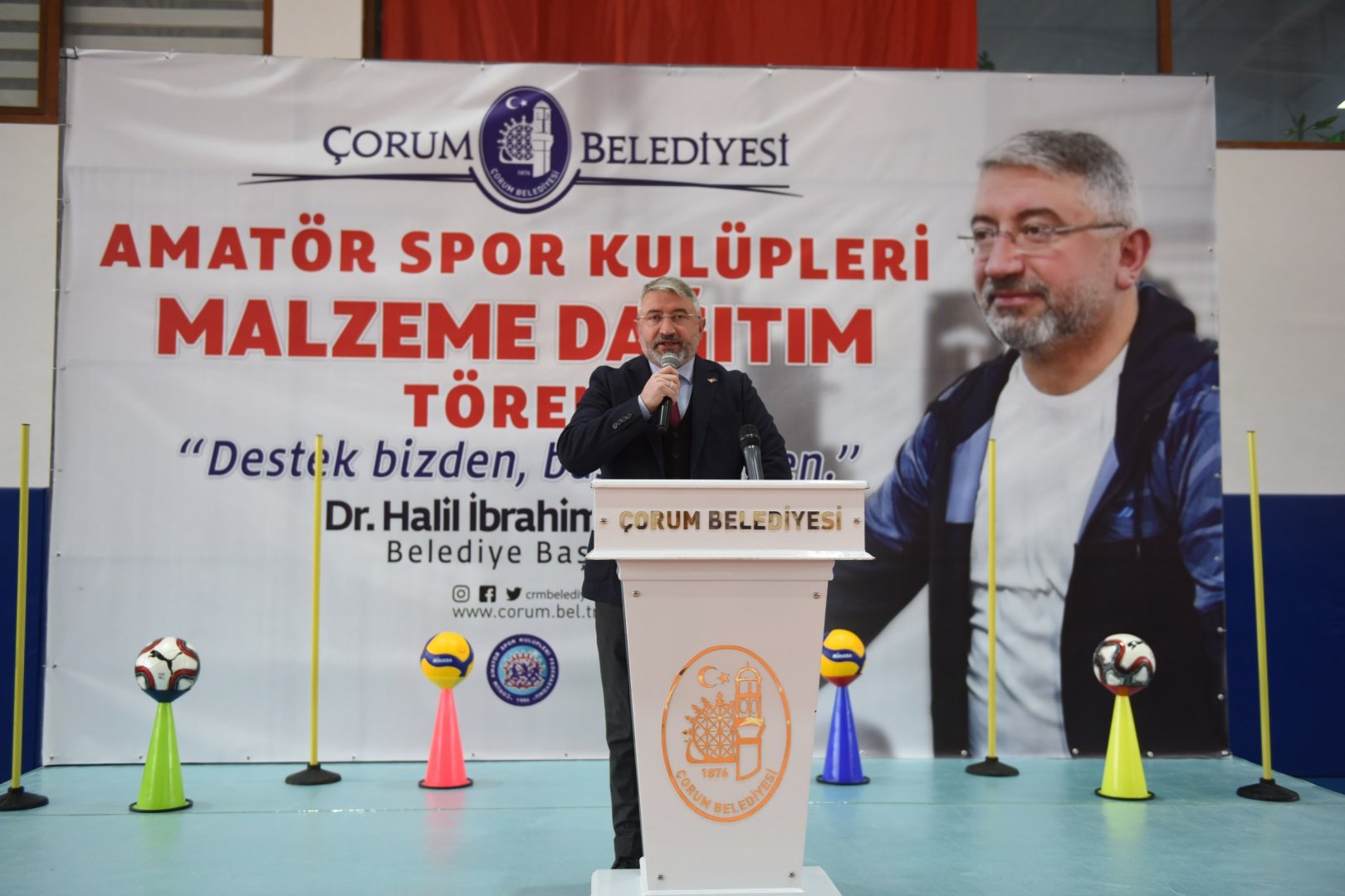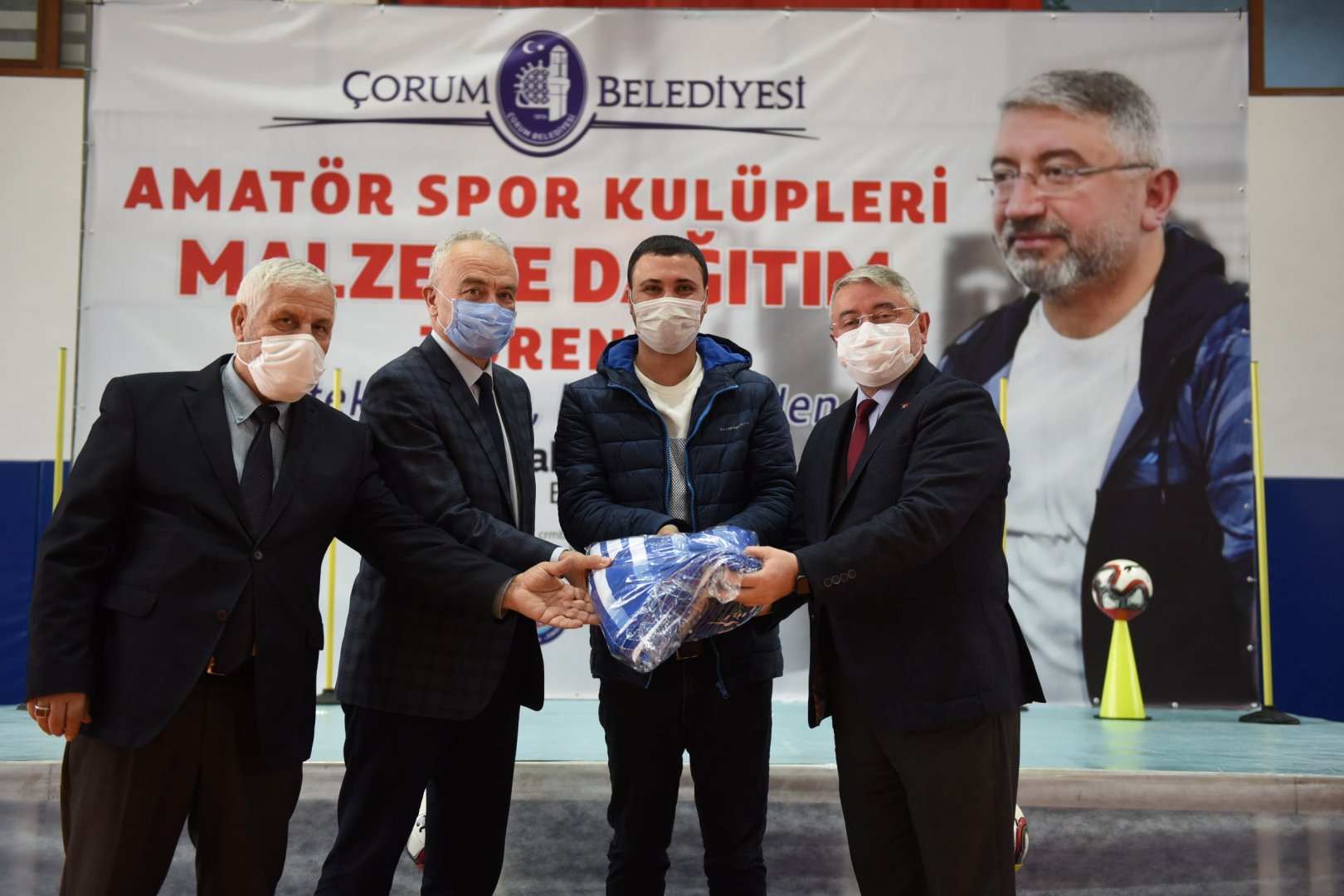 Belediyemiz tarafından Çorum Amatör Spor Kulüpleri Federasyonu aracılığı ile kulüplere yapılan malzemeler düzenlenen törenle dağıtıldı. Abdullah Tayyip Olçok Spor Salonu’nda düzenlenen malzeme dağıtım törenine Belediye Başkanımız Dr. Halil İbrahim Aşgın, Gençlik Hizmetleri ve Spor İl Müdürü Haşim Eğer, Belediye Başkan Yardımcısı Turhan Candan, Çorum Amatör Spor Kulüpleri Federasyonu Başkanı Sefer Kurtaran ile Yönetim Kurulu üyeleri ile birlikte malzeme yardımı yapılan 21 kulüp temsilcileri hazır bulundular.