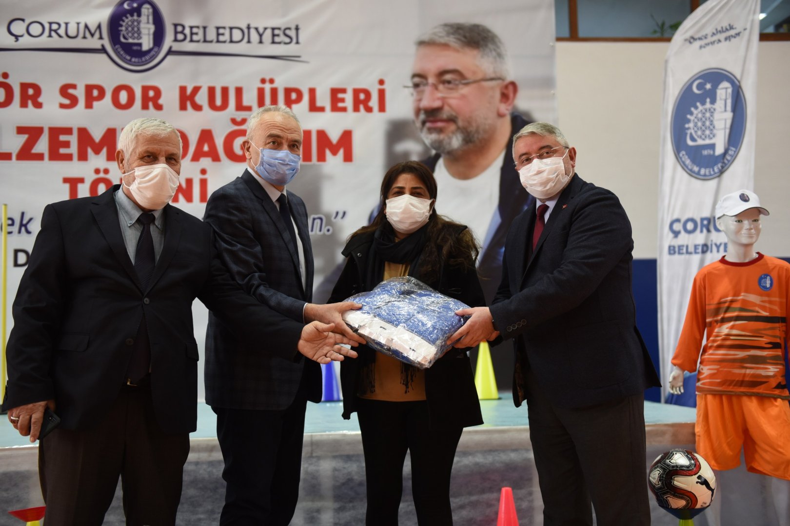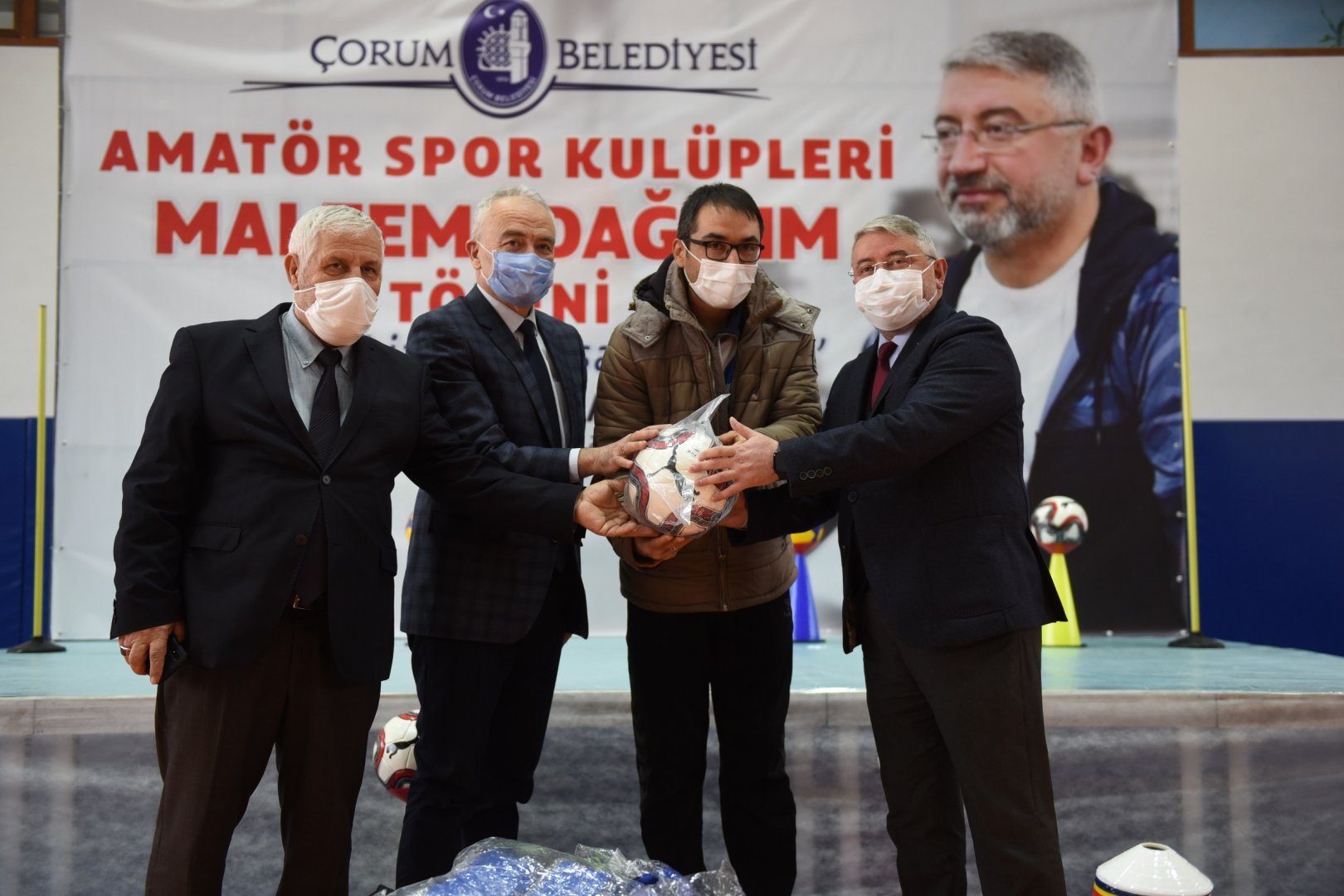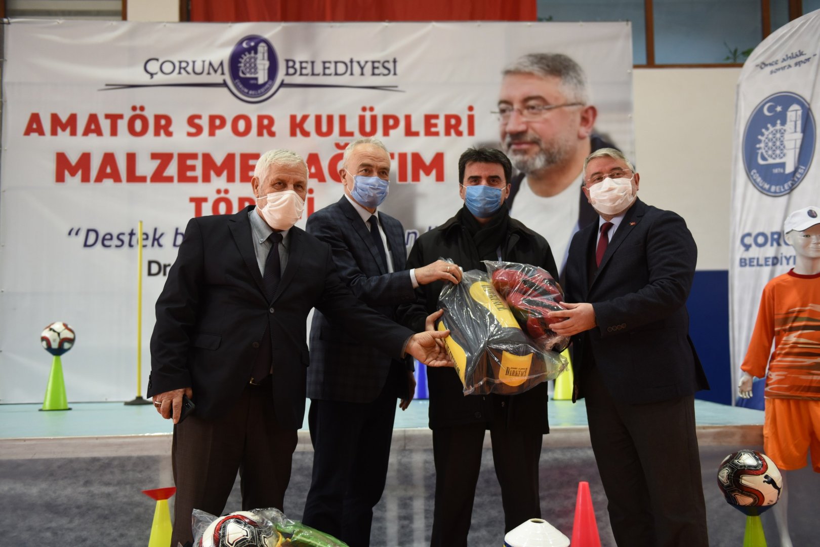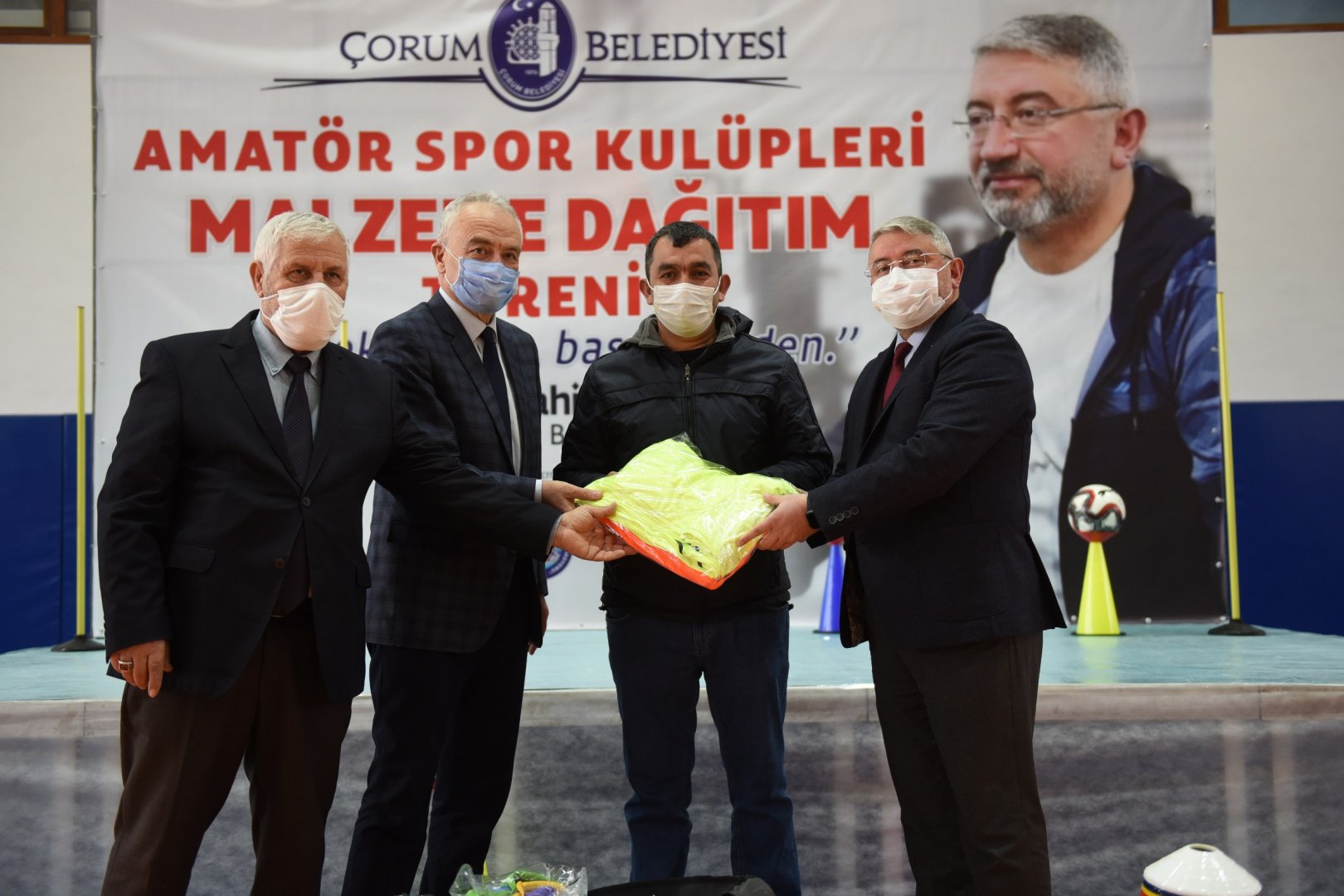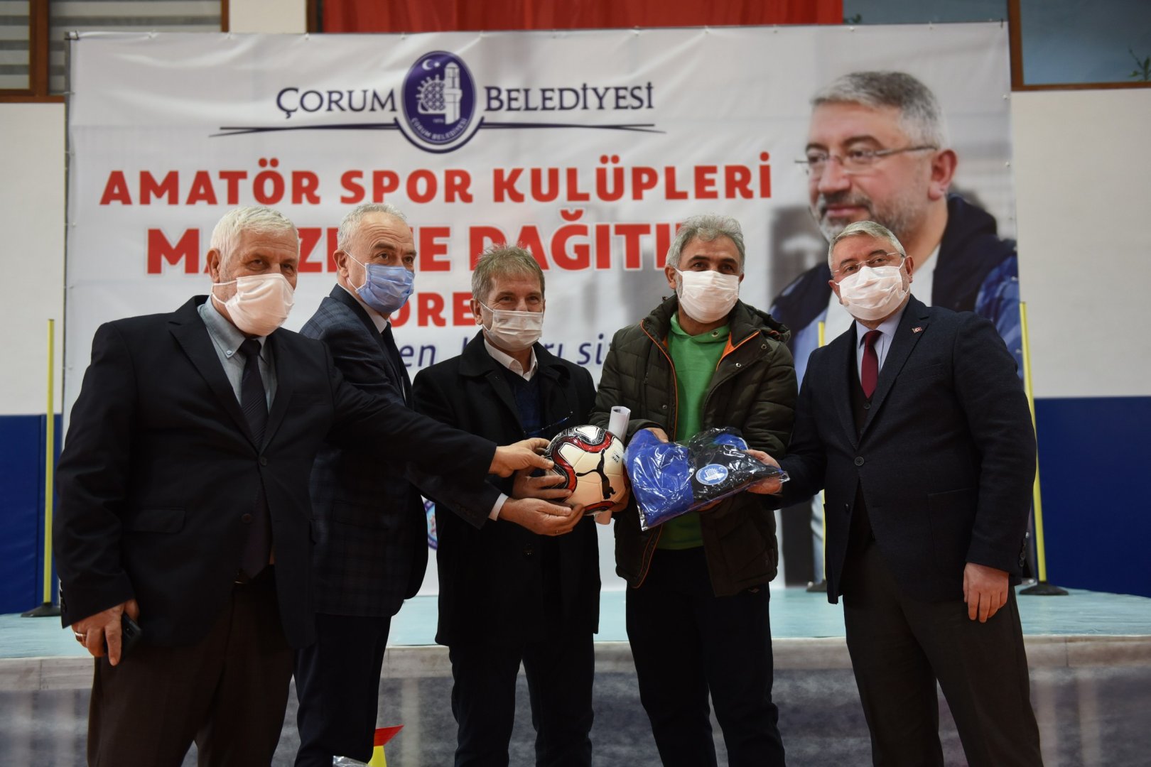 Belediyemiz tarafından Çorum Amatör Spor Kulüpleri Federasyonu aracılığı ile kulüplere yapılan malzemeler düzenlenen törenle dağıtıldı. Abdullah Tayyip Olçok Spor Salonu’nda düzenlenen malzeme dağıtım törenine Belediye Başkanımız Dr. Halil İbrahim Aşgın, Gençlik Hizmetleri ve Spor İl Müdürü Haşim Eğer, Belediye Başkan Yardımcısı Turhan Candan, Çorum Amatör Spor Kulüpleri Federasyonu Başkanı Sefer Kurtaran ile Yönetim Kurulu üyeleri ile birlikte malzeme yardımı yapılan 21 kulüp temsilcileri hazır bulundular.