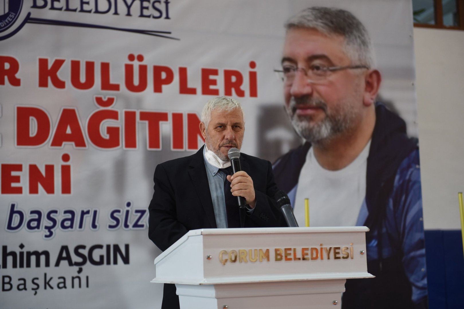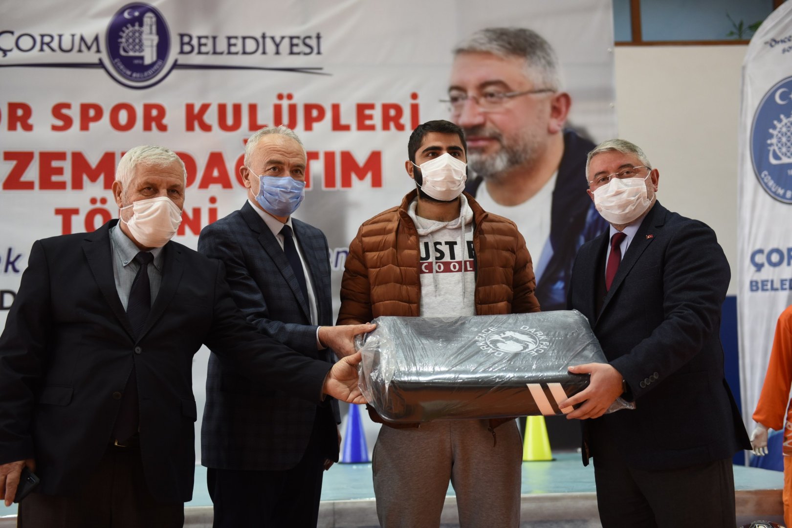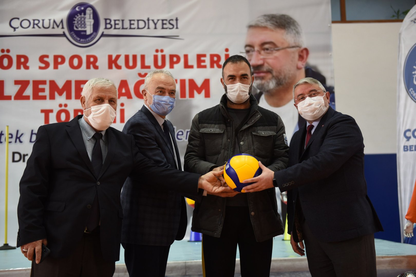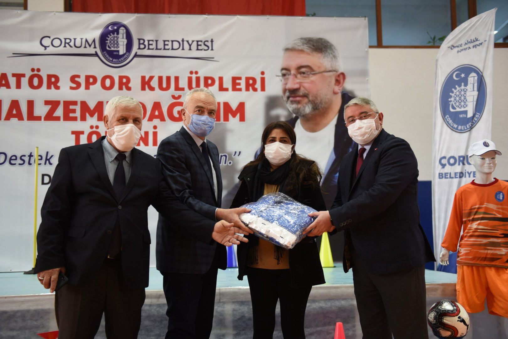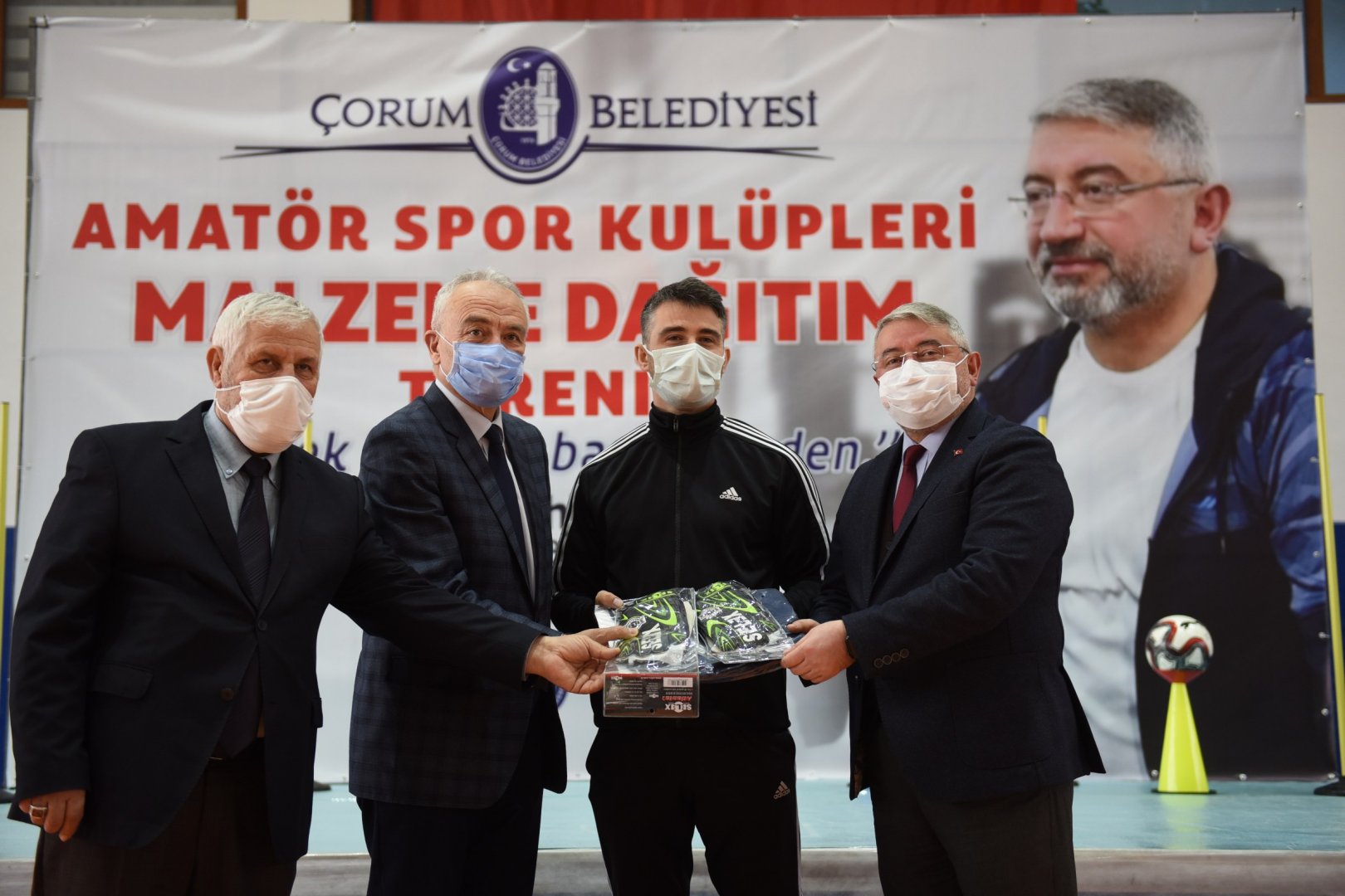 Belediyemiz tarafından Çorum Amatör Spor Kulüpleri Federasyonu aracılığı ile kulüplere yapılan malzemeler düzenlenen törenle dağıtıldı. Abdullah Tayyip Olçok Spor Salonu’nda düzenlenen malzeme dağıtım törenine Belediye Başkanımız Dr. Halil İbrahim Aşgın, Gençlik Hizmetleri ve Spor İl Müdürü Haşim Eğer, Belediye Başkan Yardımcısı Turhan Candan, Çorum Amatör Spor Kulüpleri Federasyonu Başkanı Sefer Kurtaran ile Yönetim Kurulu üyeleri ile birlikte malzeme yardımı yapılan 21 kulüp temsilcileri hazır bulundular.