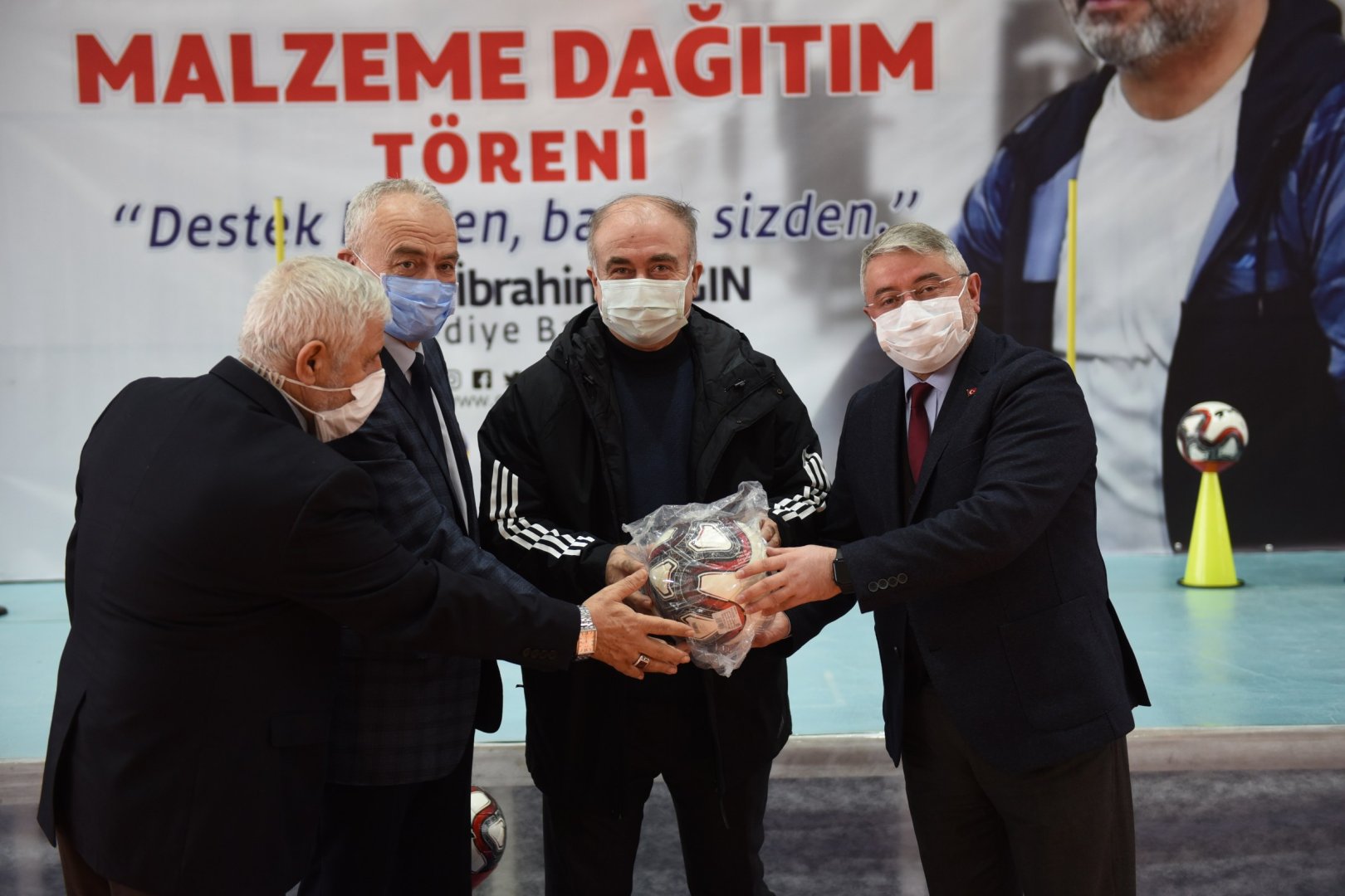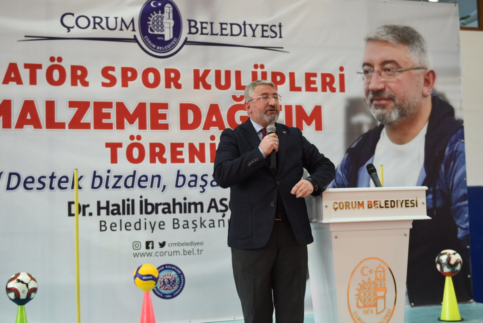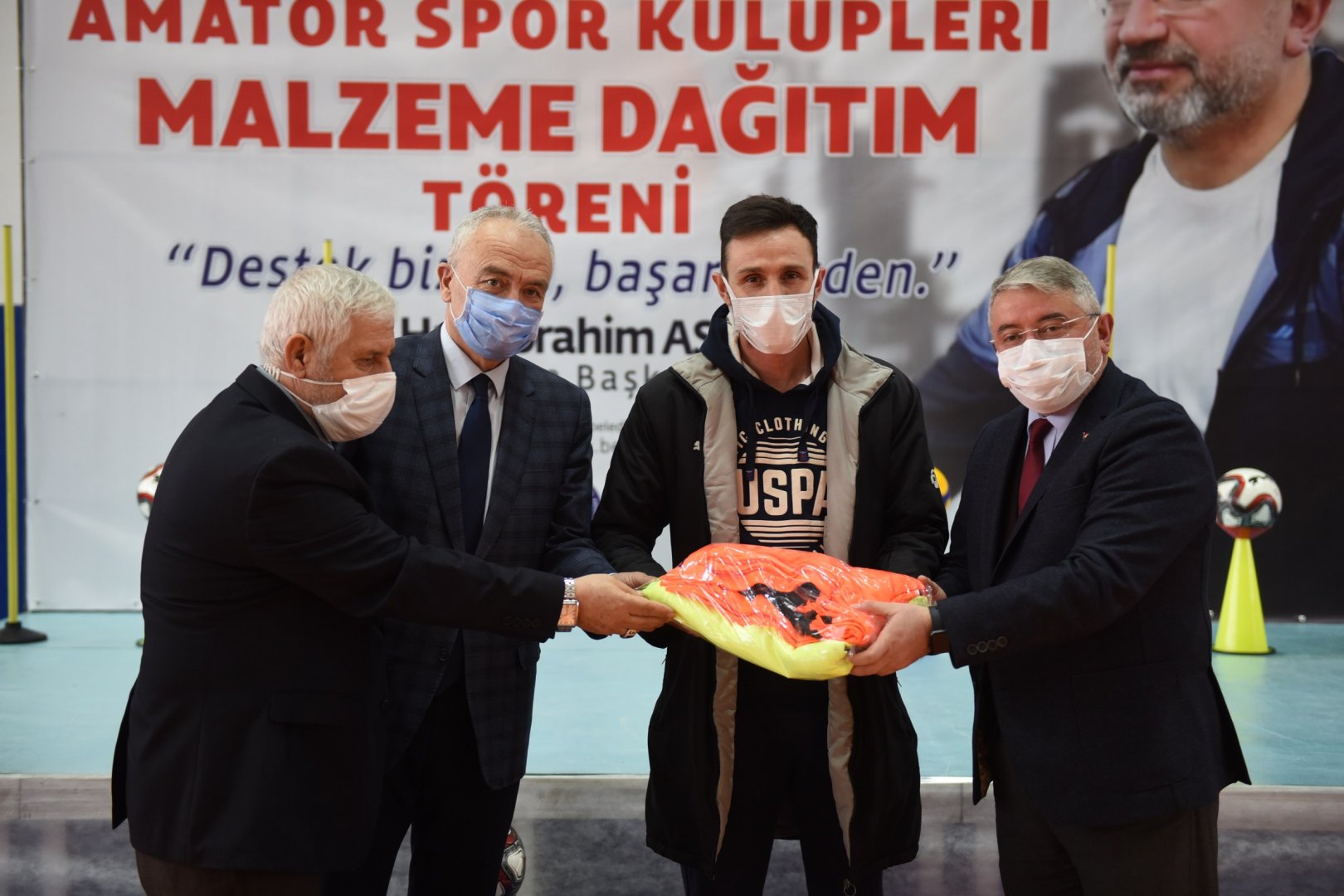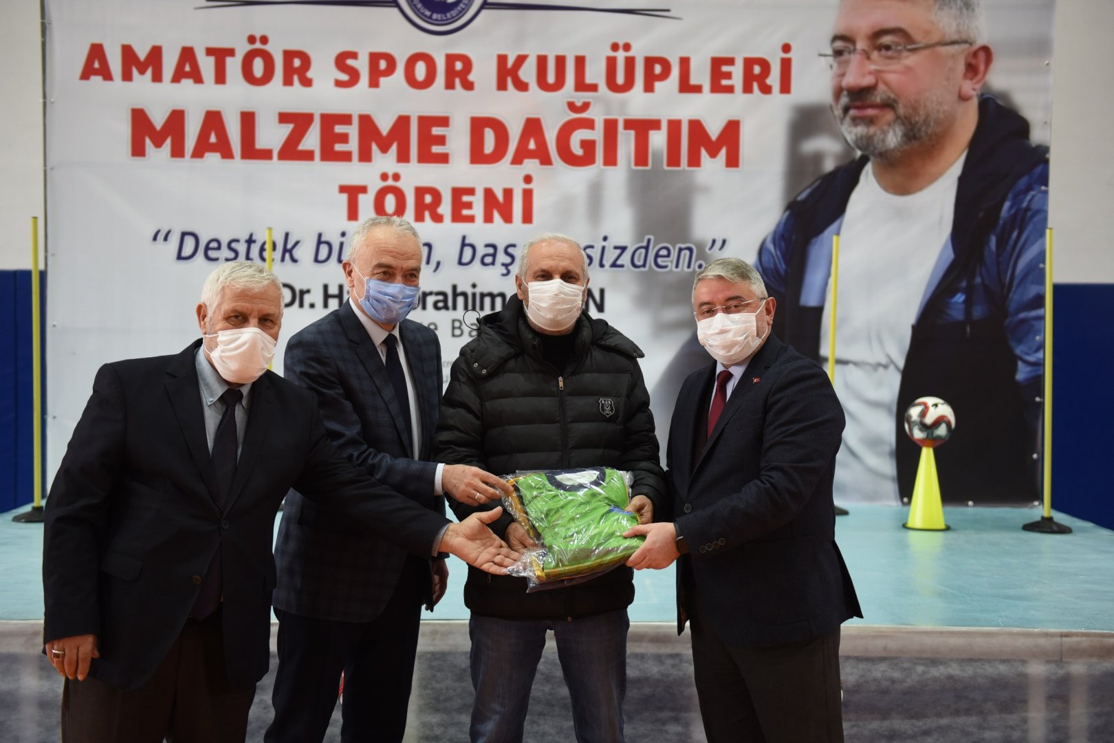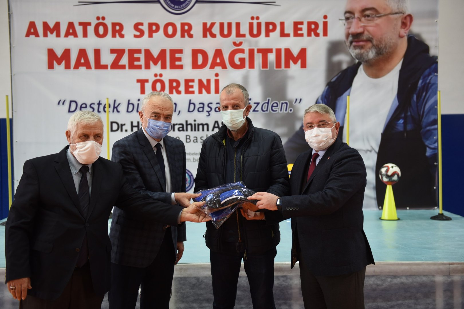 Tören öncesi bir konuşma yapan Belediye Başkanımız Dr. Halil İbrahim Aşgın, en özverili çalışan kesimlerden, gruplardan kimler var desek birçok sivil toplum örgütlerini sayabiliriz. Ancak amatör spora gönül veren yaz demeden, kış demeden çocuklarımızın gelişimine hem mental, hem de bedenen katkı sunmak için çok büyük imkansızlıklar içerisinde onlara spor sevgisini aşılayan amatör kulüplerimiz her türlü övgüyü hak ediyorlar. Belediye Başkanlığım dönemimde de çok kez şahit oldum. Gerçekten kısıtlı imkanlar doğrultusunda kulüplerimiz önemli başarılara imza atıyorlar. Bundan sonra da atmaya inşallah devam edeceklerdir. Ekim ayının 2.haftası amatör spor haftası. Biz bu malzeme dağıtım görevini o zaman icra etmek istemiştik. Maalesef pandemi nedeniyle o zaman yapamadık. Ama biz daha fazla bekleyemedik. Şehrimize bir heyecan gerekiyordu. Bir ufak dokunuş gerekiyordu. Yavrularımızı daha fazla bekletmemek adına dağıtım törenimizi bugün sizlerin huzurunda gerçekleştiriyoruz.