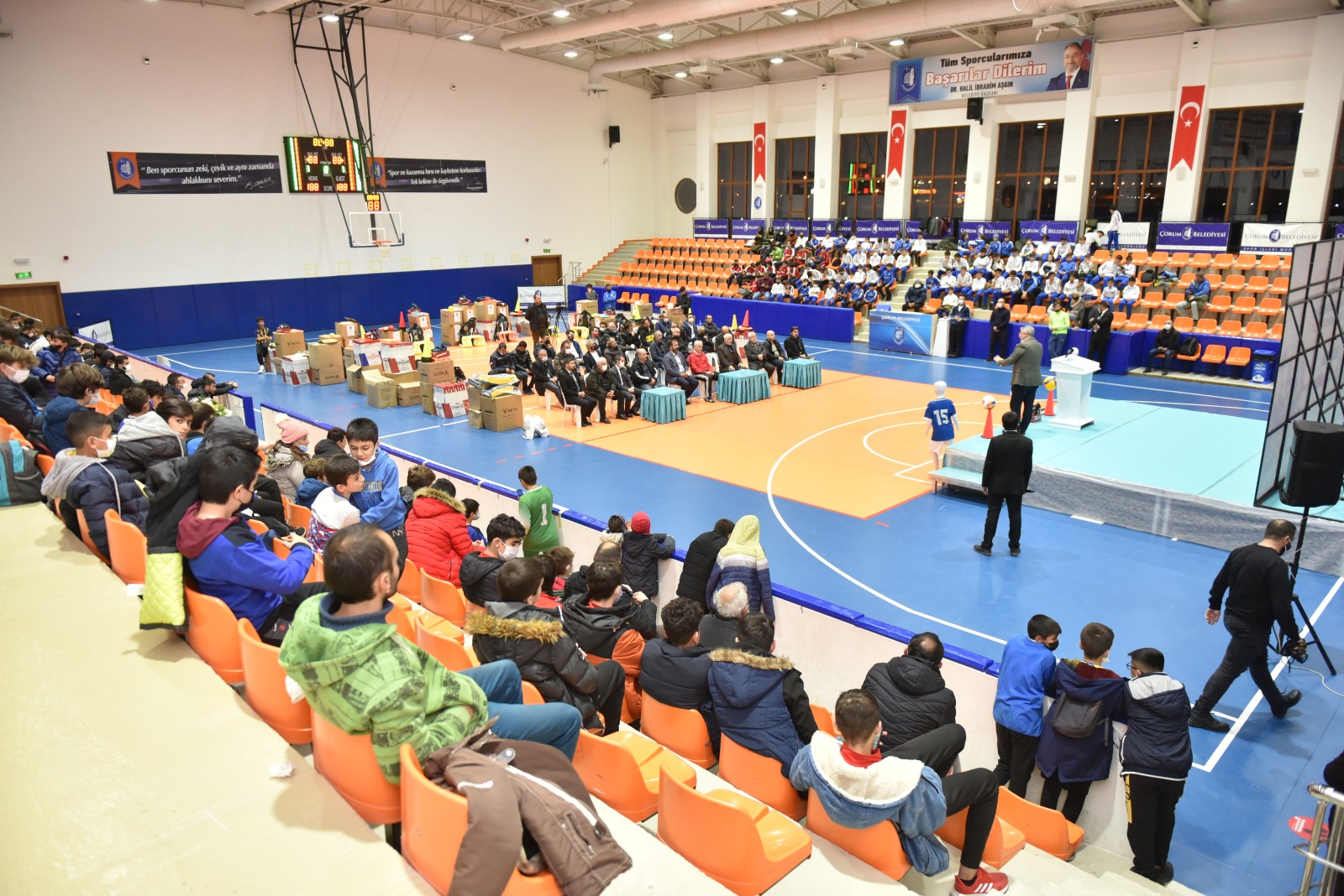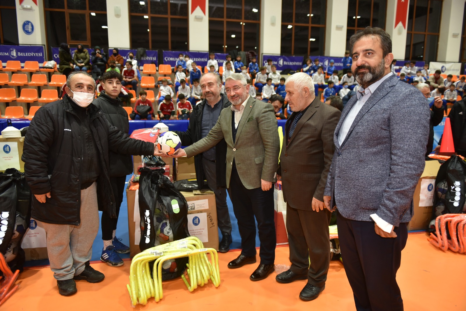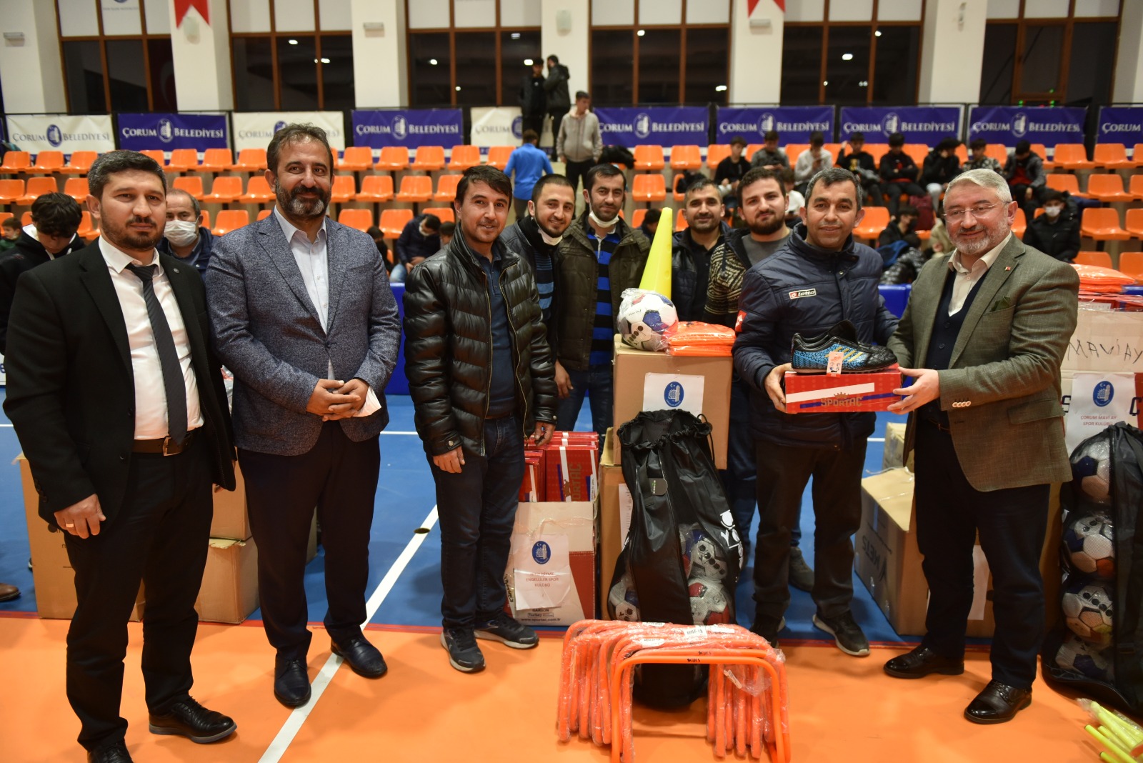 Şehit Abdullah Tayyip Olçok Spor Salonu’nda gerçekleşen malzeme dağıtım törenine, Belediye Başkanımız Dr. Halil İbrahim Aşgın, Gençlik ve Spor İl Müdürü Haşim Eğer, Hitit Üniversitesi Spor Bilimleri Fakültesi Dekanı Prof. Dr. Mehmet Kutlu, ASKF Başkanı Sefer Kurtaran, Belediye Başkan Yardımcınız İsmail Yağbat ve kulüp temsilcileri katıldı.