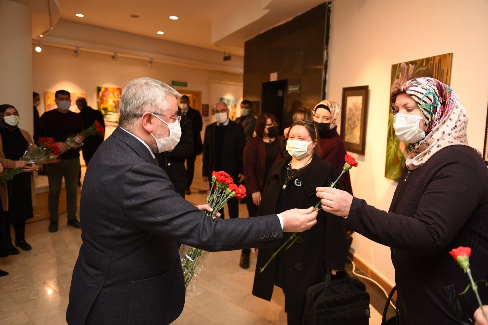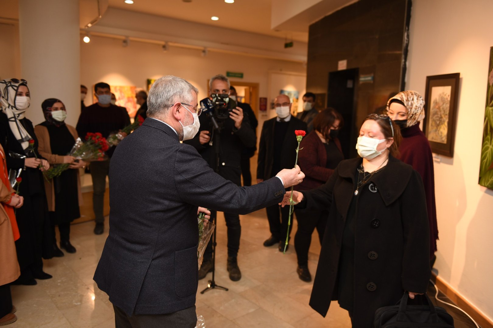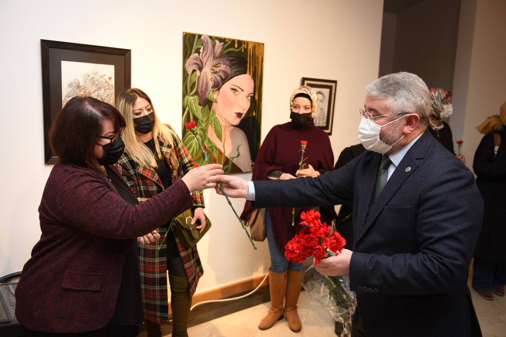 Başkan Aşgın’ın konuşmasının ardından davetliler sergiyi gezerek eserleri inceledi. 17 gün boyunca açık kalacak olan karma sergide 48 kadın sanatçının eseri bulunuyor. Başkan Aşgın ayrıca sergiye katılan kadınların 8 Mart Dünya Kadınlar Günü’nü kutlayarak karanfil hediye etti.