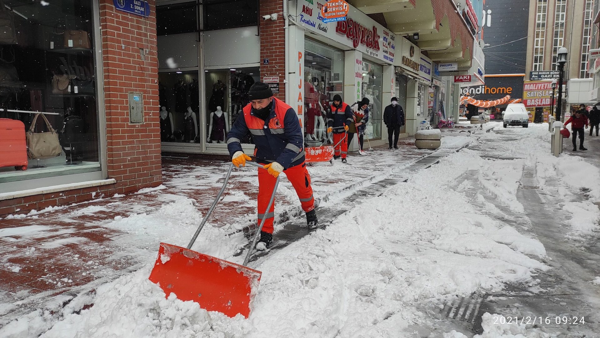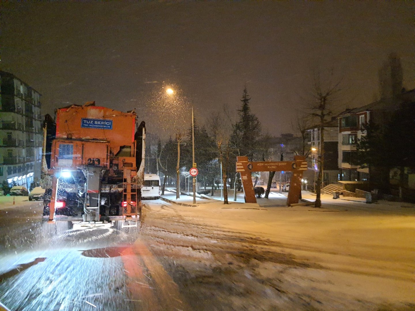 26 araç ve 215 personelle karla mücadele çalışmalarının aralıksız sürdüğünü ifade eden Belediye Başkanımız Dr. Halil İbrahim Aşgın, Afet Koordinasyon Merkezinde (AKOM) başkan yardımcıları ve birim müdürleriyle çalışmaları değerlendirdi. Kar kalınlığının şehir merkezinde 20 cm’yi bulduğunu ifade eden Başkan Aşgın, “Çorum Belediyesi olarak tüm birimlerimizi harekete geçirdik. Olası bir sıkıntı durumunda arkadaşlarımız teyakkuz halinde. Kar yağışının etkili olmaya başladığı dün akşam saatleriyle birlikte biz de 215 personelimiz ve 26 araçla kar küreme ve karla mücadele çalışmalarımızı başlattık. Gece de bu çalışmalarımızı sürdürmek suretiyle aralıksız devam ettiriyoruz. Özellikle ana arterler noktasında bir sıkıntımız yok, hemşehrilerimiz rahat olsun.” dedi.