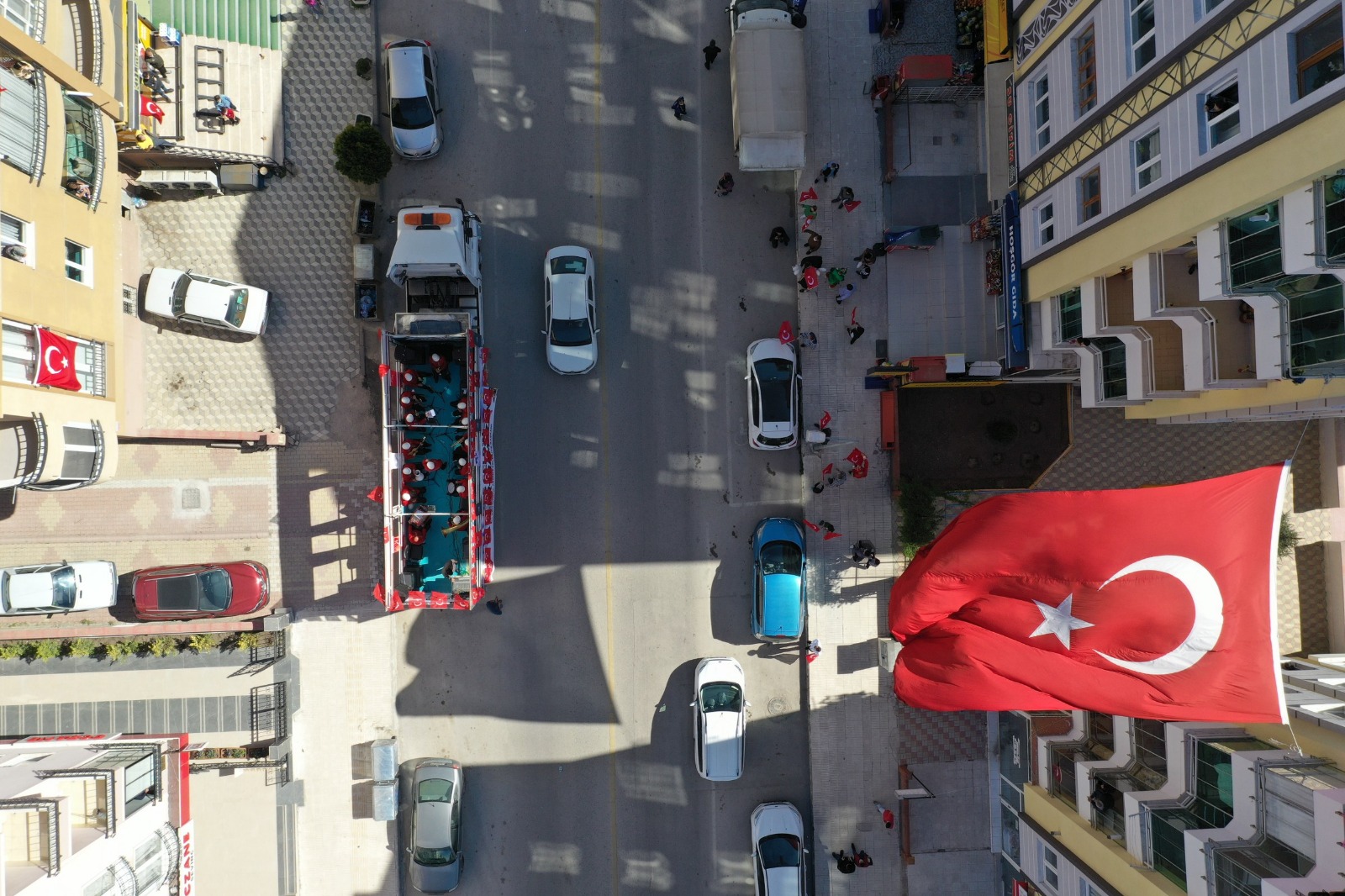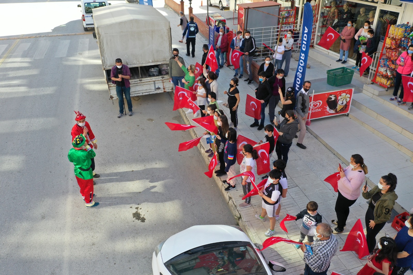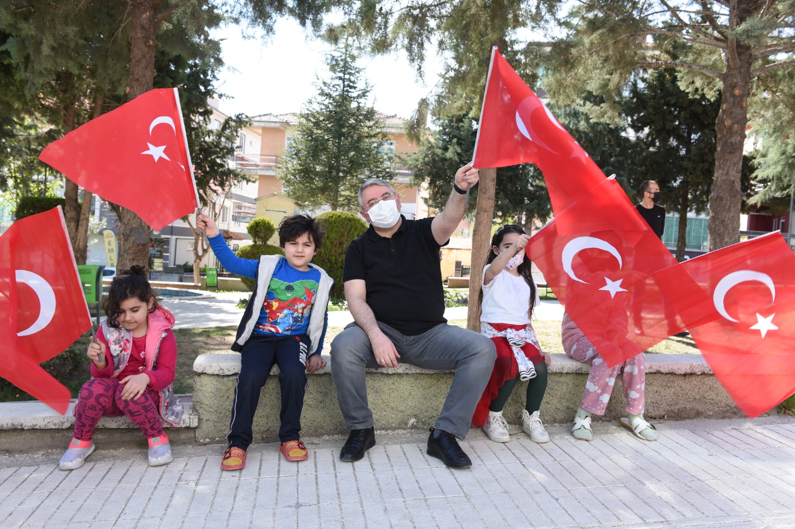 Bayram şarkıları ve marşlar eşliğinde şehrin cadde ve sokaklarını dolaşan eğlence tırı bayramın asıl sahibi çocukların pencere, balkon ve kapılarının önünde bayram sevincini yaşamasını sağladı. Bayram tırı etkinliğinde çocukların sevincine ortak olan Belediye Başkanımız Dr. Halil İbrahim Aşgın, “Bugün çok önemli bir gün, istiklalimizin başladığı, egemenliğin millete verildiği, hakimiyet kayıtsız şartsız milletindir dendiği günün adı bugün. Aradan 101 yıl geçti hala o başlangıç noktasındayız. ‘Egemenlik kayıtsız şartsız milletindir’ diyoruz. Bize zincir vurmak isteyenler, bizi mahkum etmek isteyenler Kurtuluş Savaşında, Dumlupınar’da Çanakkale’de, 15 Temmuz’da gerekli dersi aldı ve gitti. Bundan sonra da öyle olacak. Yavrularımızın gözlerine bakıyorum emanet ehil ellerde. Allah’ın izniyle bu millete bundan sonra da kimse diz çöktüremeyecek. Ebediyete kadar milletimiz var olacak, devletimiz var olacak. Bugün 101.’sini kutladığımız bayramımızın, yavrularımız 150. yılını, 200. yılını kutlayacak ve ebediyete kadar da kutlanacak. Buna yürekten inanıyorum. Bu bayramı çocuklarımıza armağan eden Mustafa Kemal Atatürk ve tüm şehitlerimizi rahmetle, minnetle ve şükranla anıyorum” dedi.