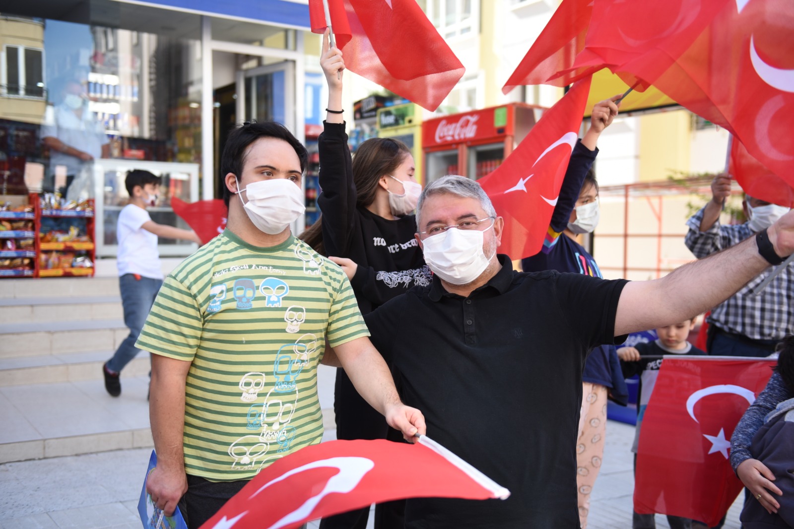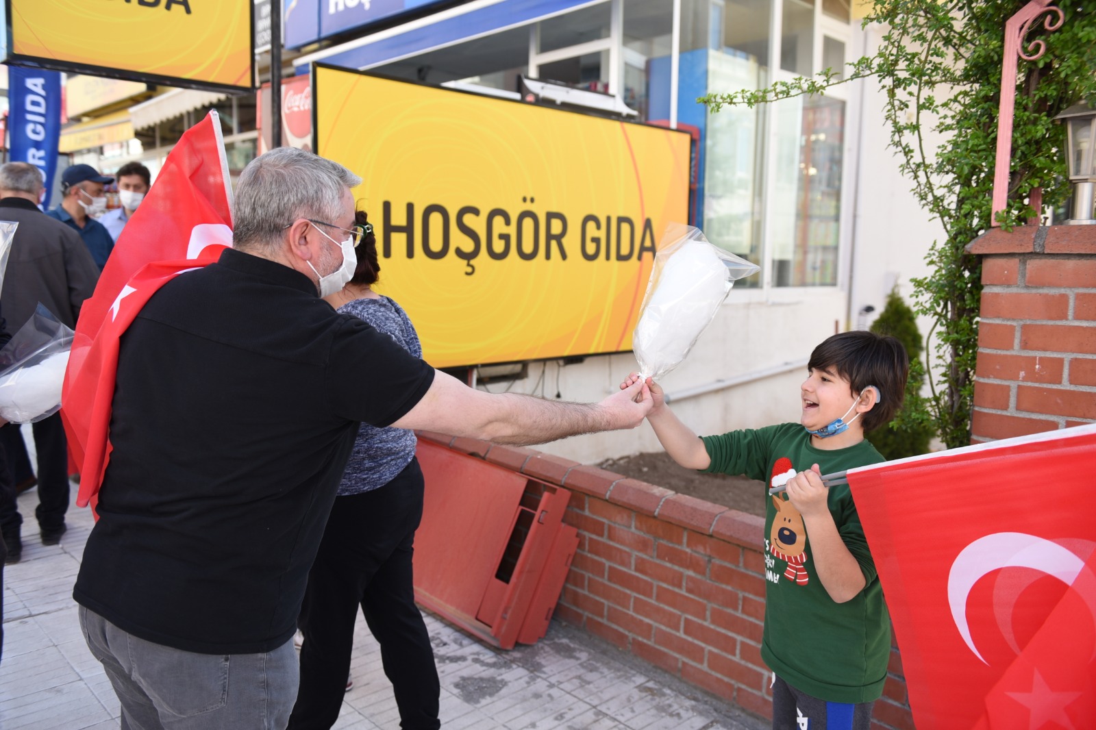 Bayram tırı etkinliğinde çocuklar için Hacivat ve Karagöz gösterisi düzenlendi, çocuklara bayrak ve pamuk şeker dağıtıldı. Başkan Aşgın da bayrak salarak ve şarkılara eşlik ederek çocukların sevincine ortak oldu.