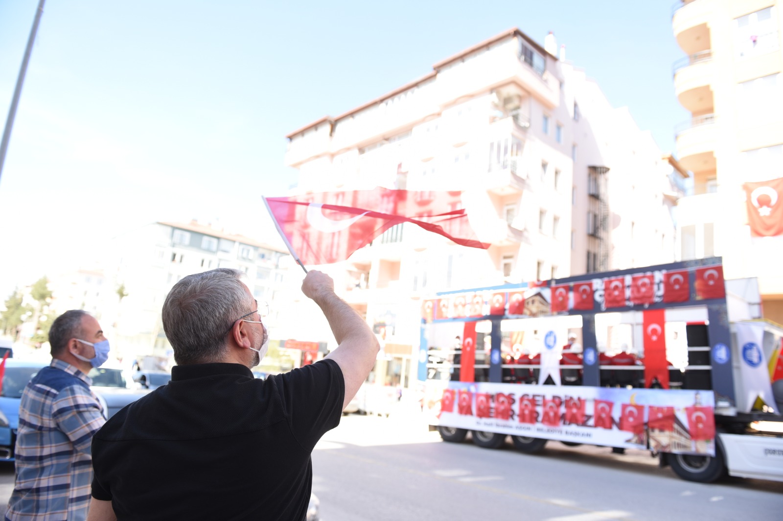 Belediyemizin bayram tırı, koronavirüs tedbirleri gölgesinde kısıtlamalarla geçen 23 Nisan Ulusal Egemenlik ve Çocuk Bayramının coşkusunu çocuklara ulaştırmak için şehrin her tarafını gezdi.