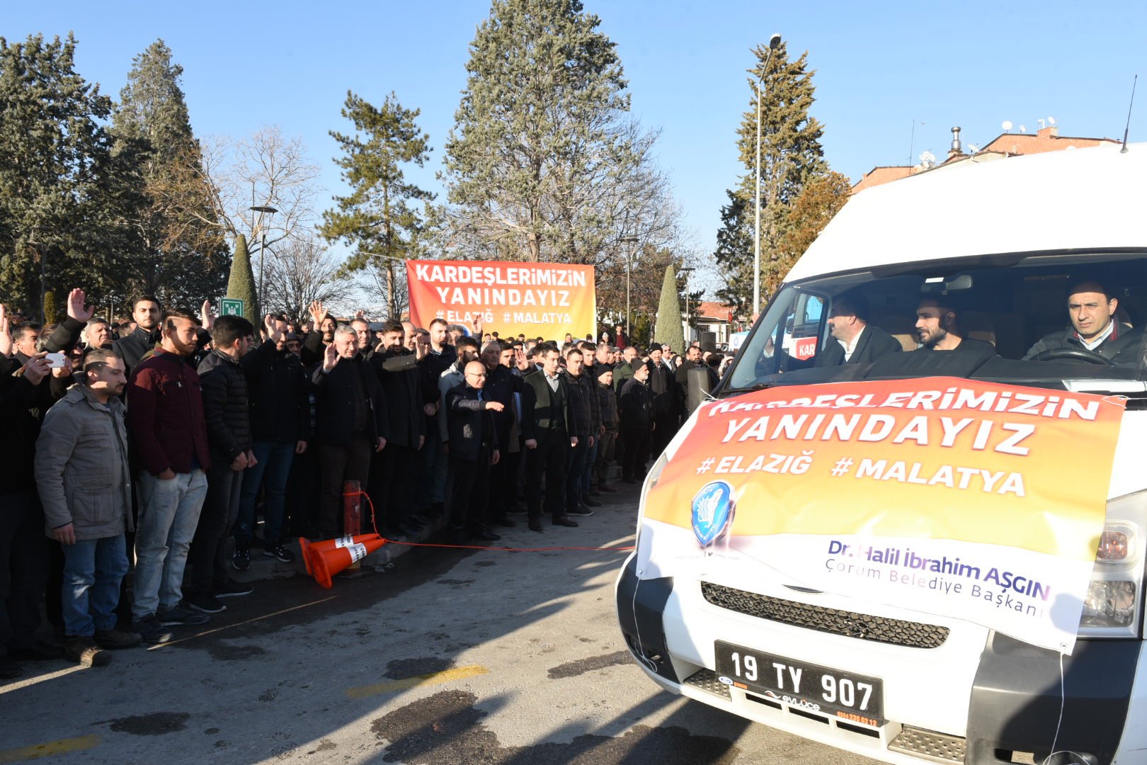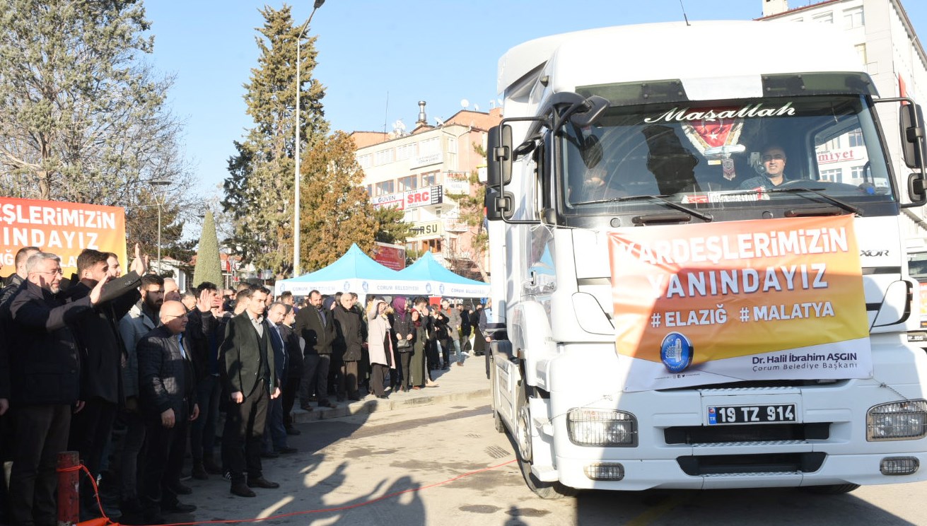 Yaralarımızı hep birlikte saracağız  diyen Belediye Başkanımız Dr. Halil İbrahim Aşgın;”Devletimiz tüm kurumlarıyla depremzede kardeşlerimizin yanında. Depremin olduğu ilk andan itibaren gerekli koordinasyonu sağlamak için hem genel merkez hem de Elazığ AFAD ile irtibat halinde olduk. Bölge halkının en çok neye ihtiyacı olduğu konusunda bilgiye sahibiz. Hazırlıklarımızı biz de bize gelen bilgeye göre yaptık. 250 bin TL değerinde 1040 koli gıda paketi hazırladık. 90 bin TL değerinde giysi, bot, ayakkabı malzemesi temin ettik. Bu malzemeler tüm Çorum’un, Çorum halkının malzemesi. Çorum olarak bu yardımı gönderiyoruz. Bundan sonraki süreçte de sürekil AFAD ekipleri ile irtibat halindeyiz. Deprem bölgesinden bize talep gelmesi durumunda neye ihtiyaç varsa karşılamaya hazırız. Gerekirse hayırsever işadamlarımızı da yardım seferberliğine katarak yardımlarımızı sürdüreceğiz.” dedi.