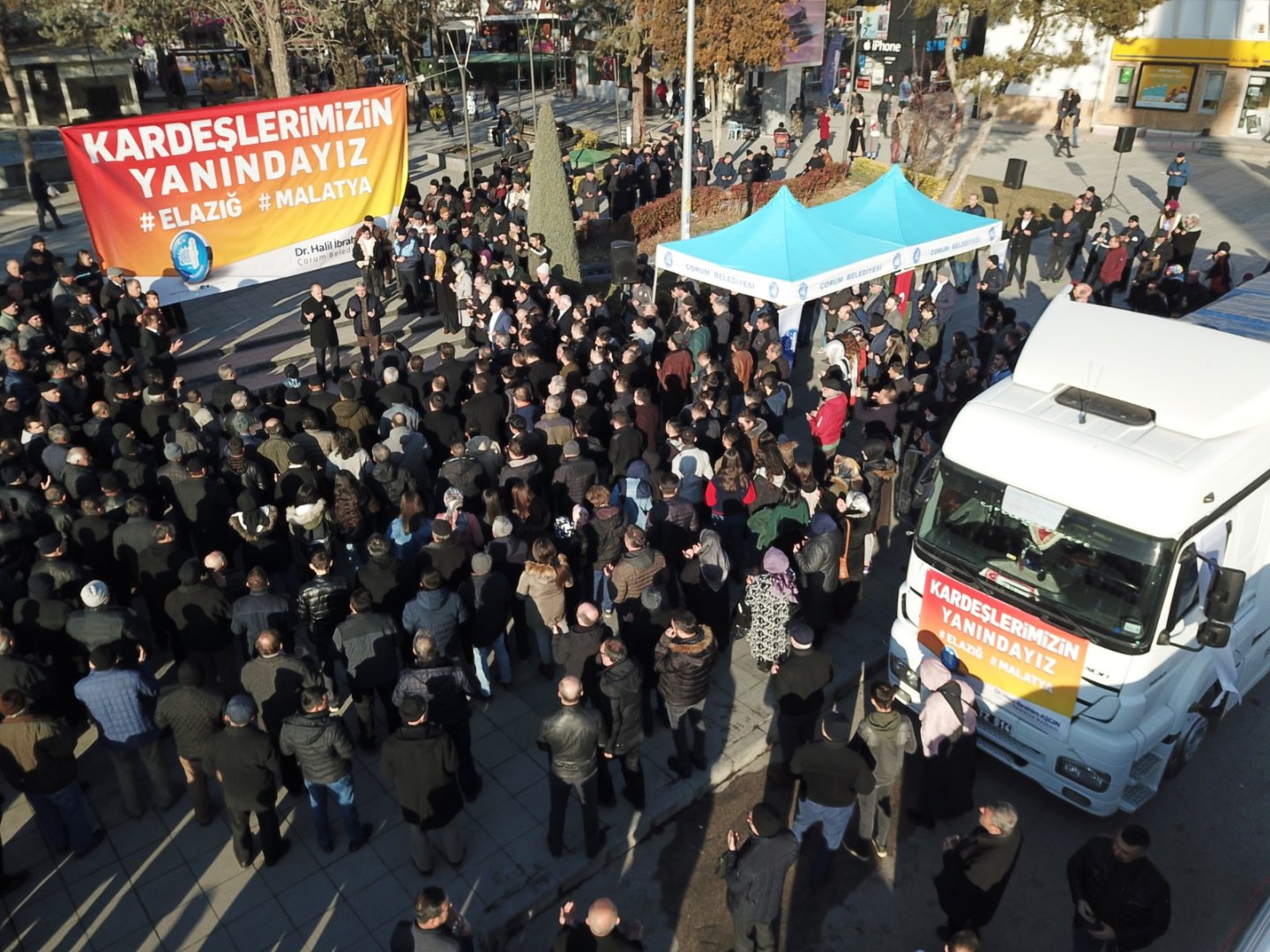 Belediyemiz  tarafından Elazığ ve Malatya’daki  deprem bölgesine gönderilmek üzere hazırlanan yardım Tır’ları Saat Kulesi’nde düzenlenen törenle dualarla uğurlandı.