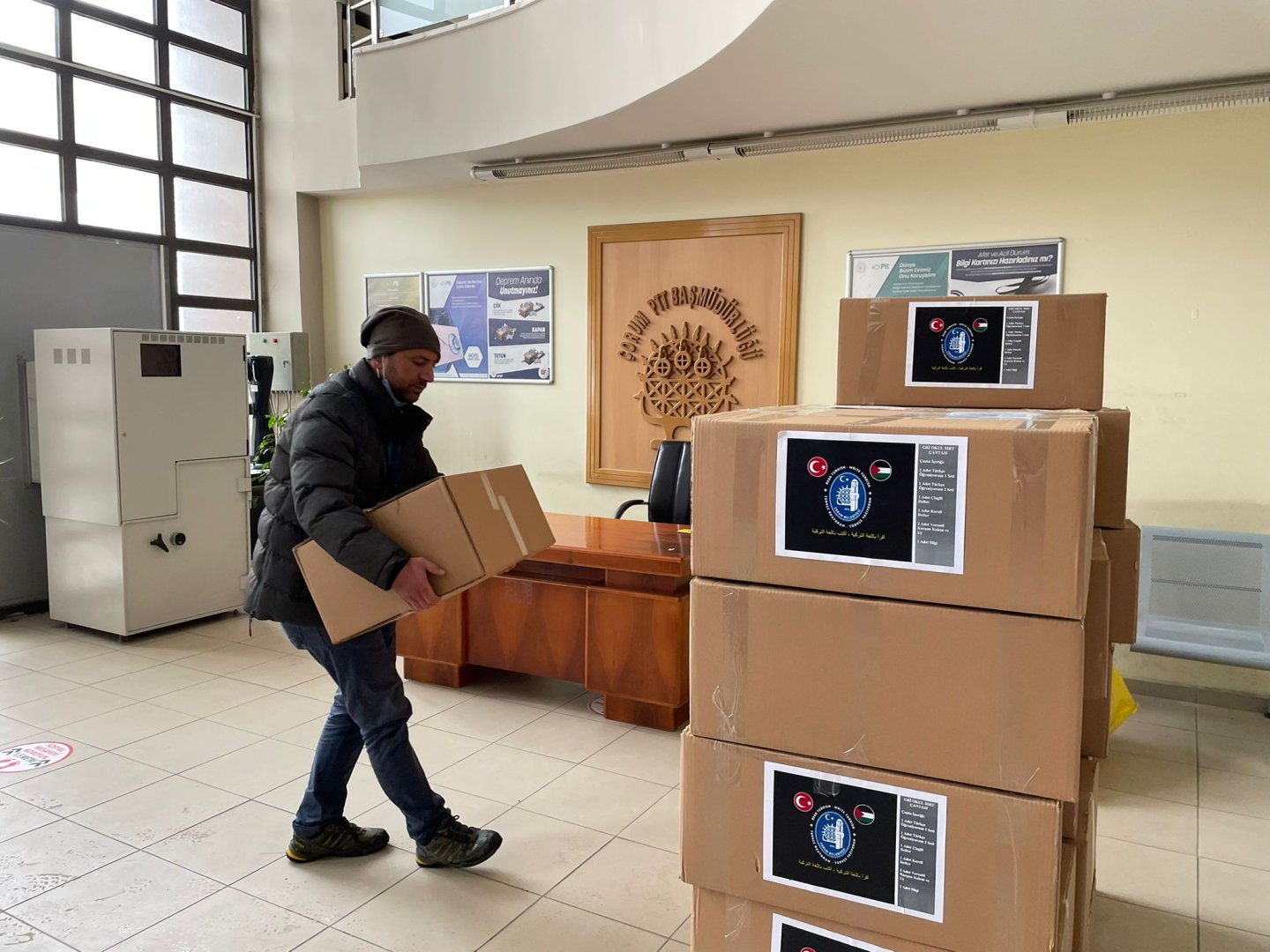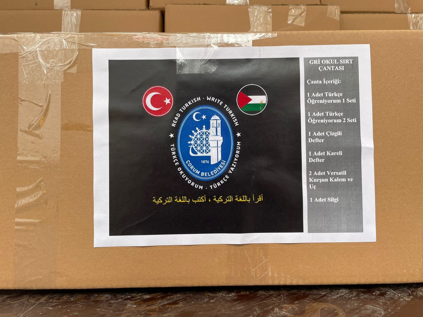 Belediyemiz olarak kültür, bilgi ve becerilerin paylaşılması noktasında yurtiçinde ve yurtdışında birçok belediyeyle kardeş belediye olduklarını belirten Belediye Başkanımız Dr. Halil İbrahim Aşgın, “Bir yandan da Gönül Coğrafyamız içerisinde yer alan Filistin’de Kalkilya şehriyle ve Azerbaycan’da Fuzuli şehriyle kardeş şehir olma yolunda karşılıklı protokollerde son aşamaya geldik.  2021 yılı Kasım ayında Kalkilya’da açılan Çorum Kültür Evi’nde Türkçe öğrenmek isteyen, Çorum’un kültürünü öğrenmek isteyen kıymetli yavrularımız ve kardeşlerimiz için kırtasiye desteğinde bulunduk.  350 okul sırt çantası, 500 adet Türkçe dil eğitim seti, 200 adet ilköğretim Türkçe dil eğitim seti, 10 adet Türkçe dil eğitim kitabı 700 adet defter, 700 adet kurşun kalem ve 350 adet silgi olmak üzere toplam 59 koliden oluşan yardımı PTT aracılığı ile Kalkilya’ya gönderdik” dedi.
