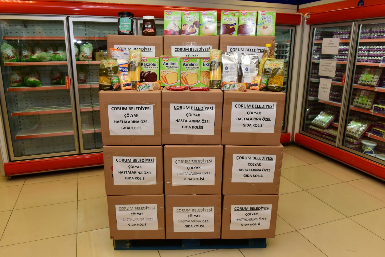Gluten içermeyen 18 gıda ürününden oluşan 30 gıda kolisini Çorum’da bulunan 30 çölyaklı aileye ulaştıracaklarını söyleyen Belediye Başkanımız Dr. Halil İbrahim Aşgın, glutensiz gıdalara yüksek fiyatlı olması ve zor bulunması nedeniyle alım gücü yerinde olmayan çölyaklı hastalara destek verdiklerini vurguladı. Çorum Belediyesi olarak toplumun her kesimine yönelik çalışmalar yaptıklarının altını çizen Başkan Aşgın, “Ramazan bayramı öncesi çölyaklı kardeşlerimize bir ikramımız olsun, hediyemiz olsun istedik. Bu gıdaların tedarik edilmesi çok kolay değil. Tedarik edilse bile özellikle maddi durumu iyi olmayanlar için gerçekten önemli bir maddi külfeti de beraberinde getiriyor. Toplumun her kesimine yönelik çalışmalarımız olduğu gibi çölyaklı kardeşlerimize Çölyak Derneği aracılığıyla böyle bir katkı sunmak istedik. Özellikle ihtiyaç sahibi olan, derneğimize üye çölyaklı kardeşlerimize glutensiz gıda malzemelerinden oluşan kolimizi ulaştırmış olacağız. Onlara bir bayram hediyesi vermiş oluyoruz. Daha öncesinde Halk Ekmek büfelerimizde belli noktalarda glutensiz ekmek tedarik edebiliyorlardı. O uygulamamız çölyaklı hastalarımıza yönelik bir başlangıçtı. Bu çalışmamız da ikinci aşaması oldu.” dedi.